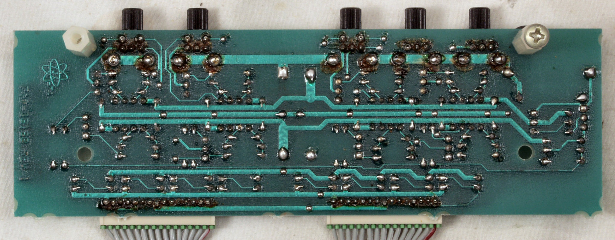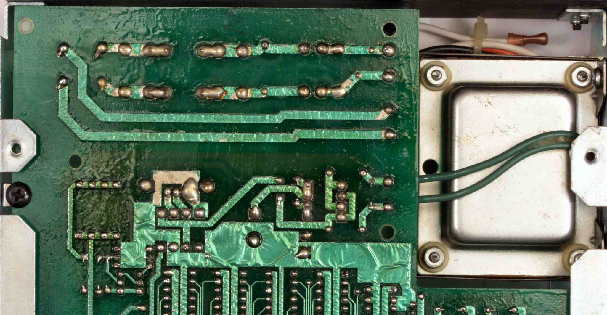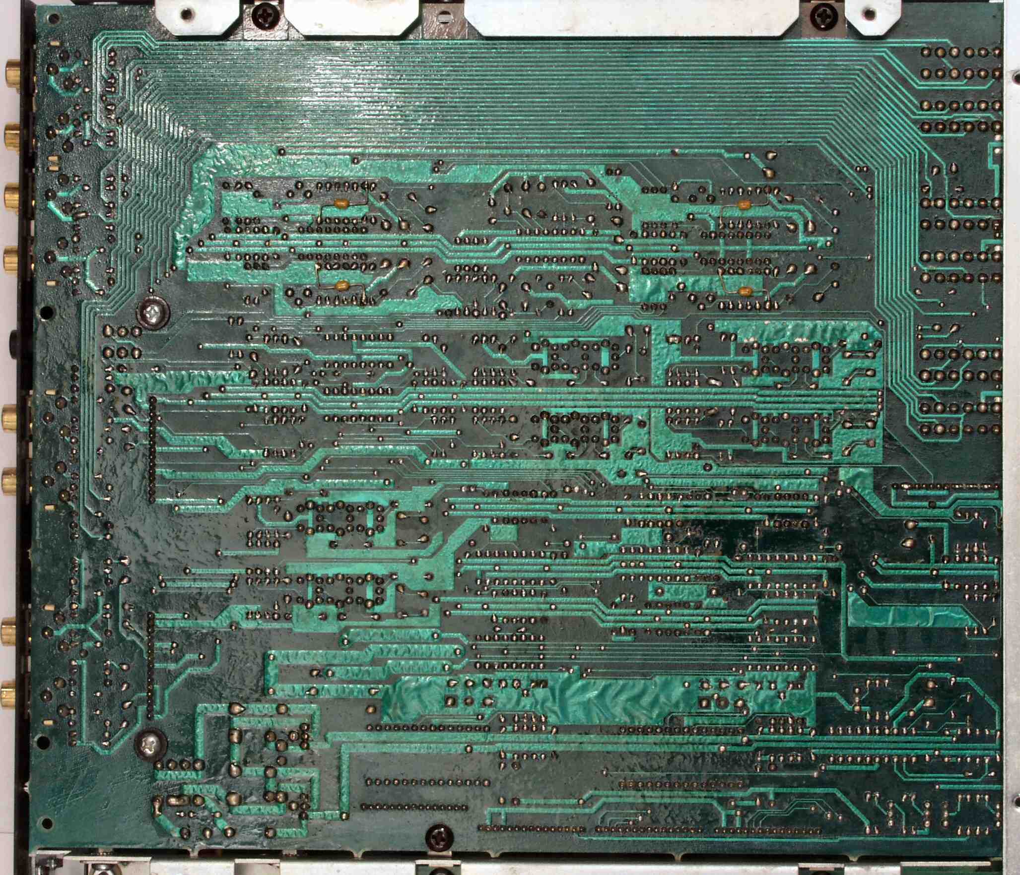 C−3E. 修理完成後 メイン基板裏。余分なフラックスを落として、コート液を塗る。