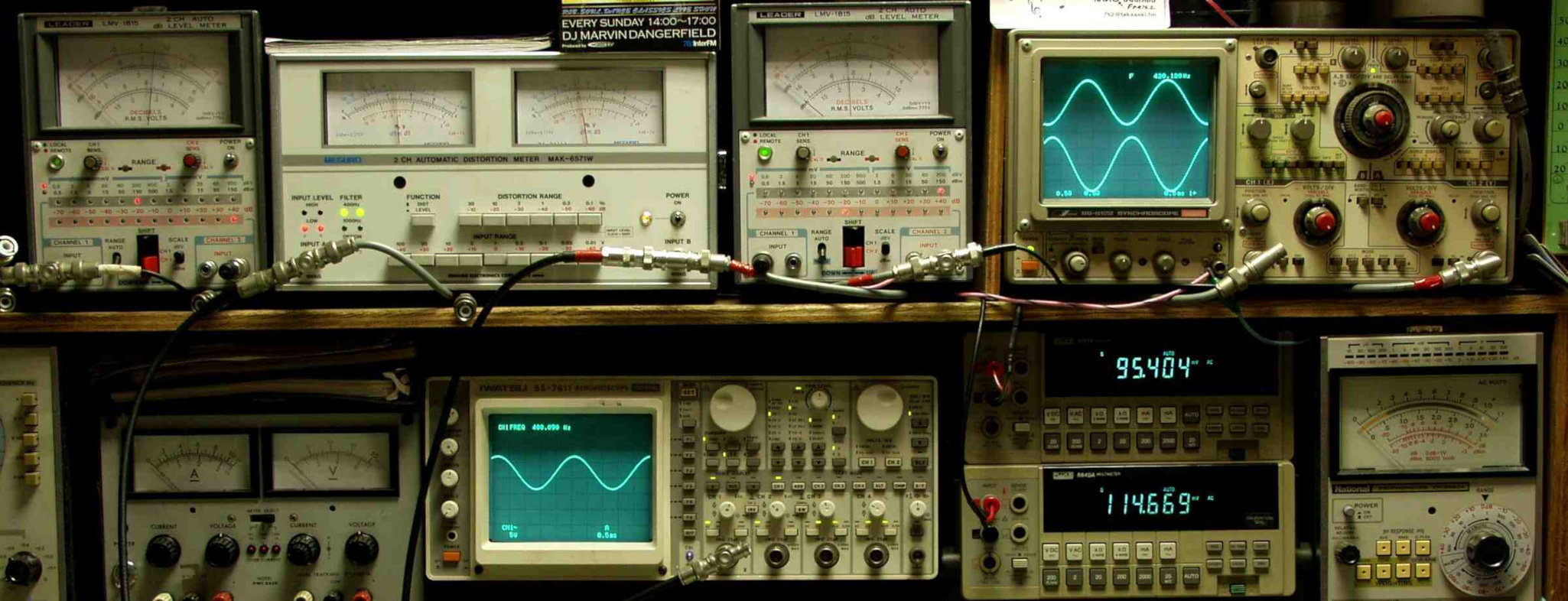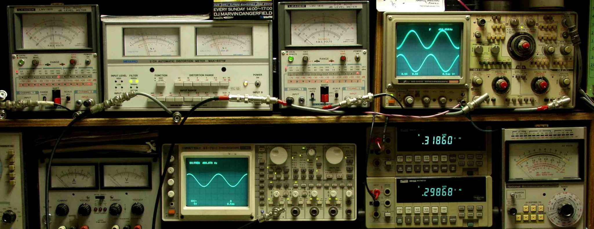 上段中左 歪み率計=出力の歪み率測定 左メータ=L出力、右メータ=R出力