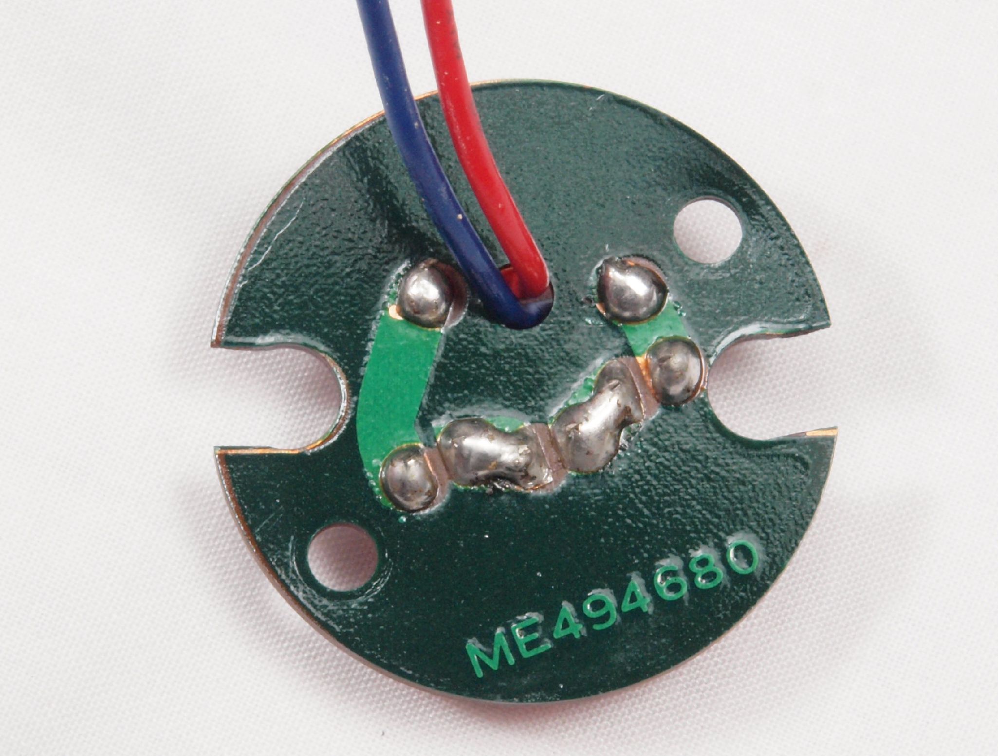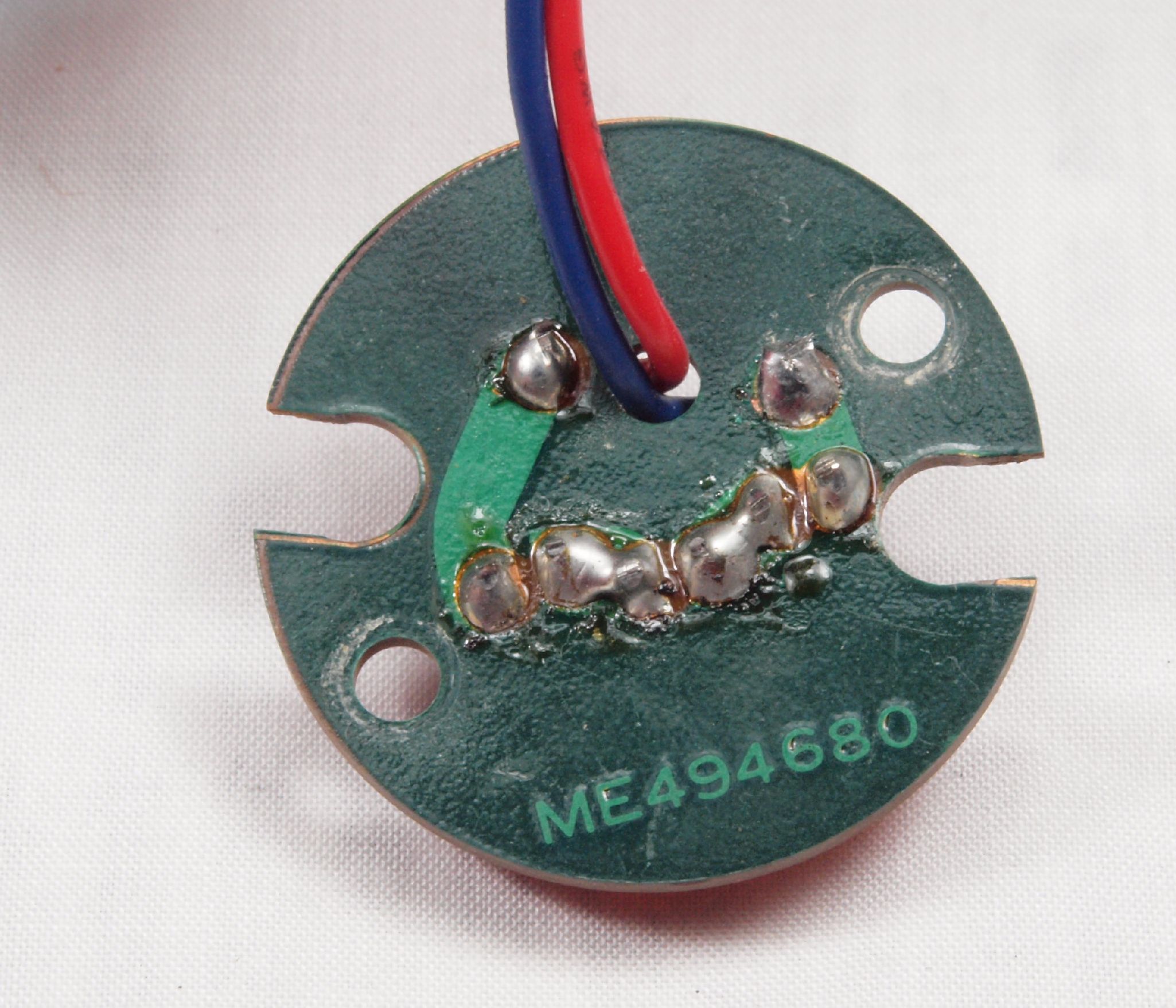| C35. 完成ストロボ基板裏。余分なフラックスを落として、コート液を塗る。 | ||||||||||||||||||||||||