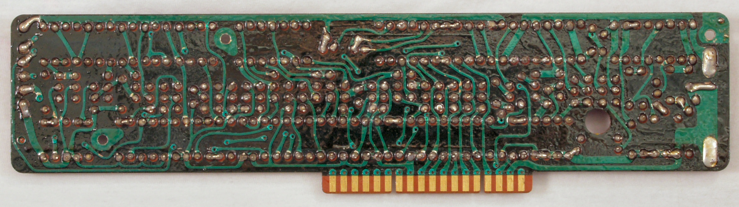 | C73. 完成メイン基板裏。余分なフラックスを落として、コート液を塗る。 | ||||||||||||||||||||||||||||||