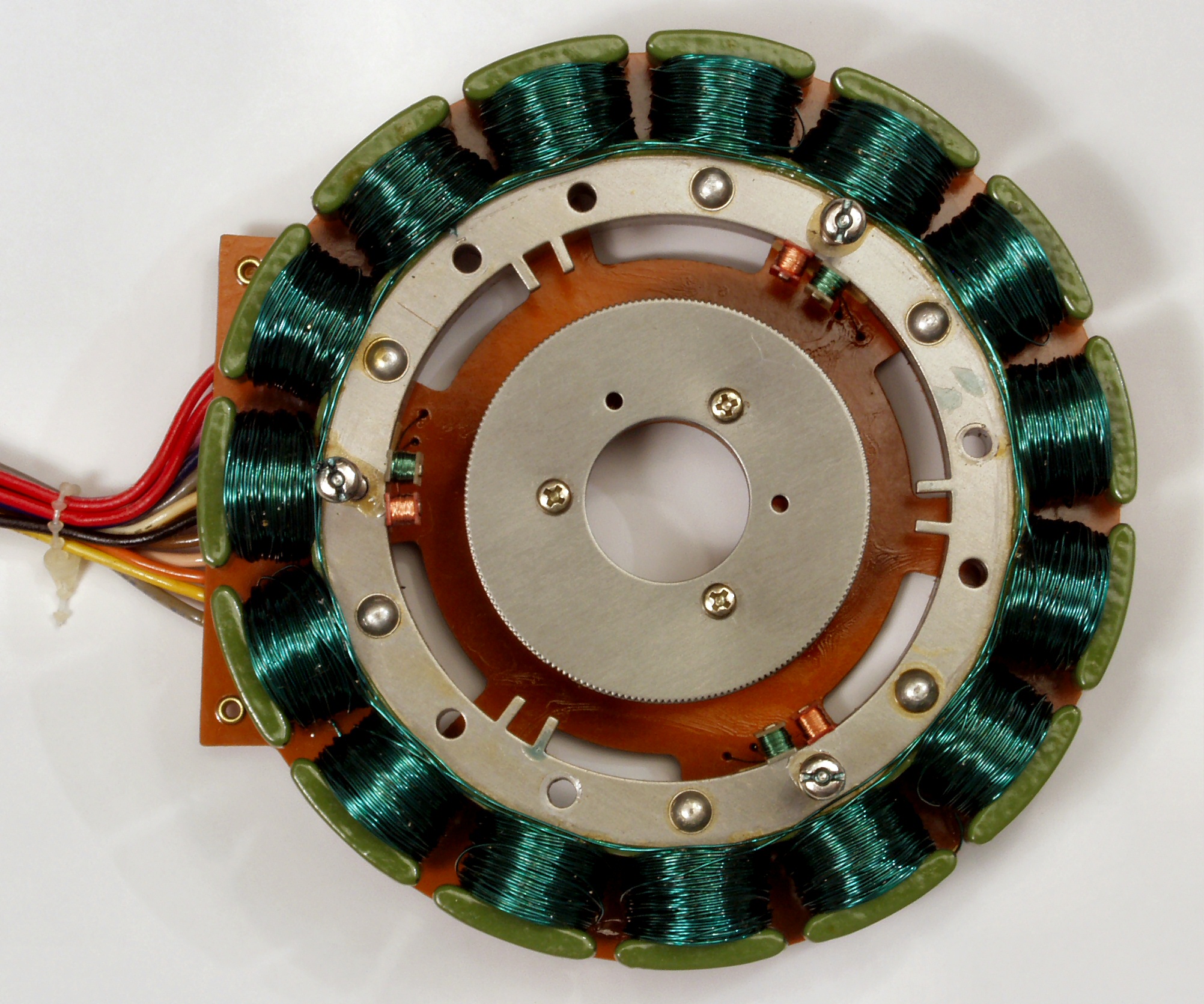 | CA2. 修理中 固定子(アウターロータなので実際はこちらが回転する)。 | ||||||||||||||||||||||||||||||