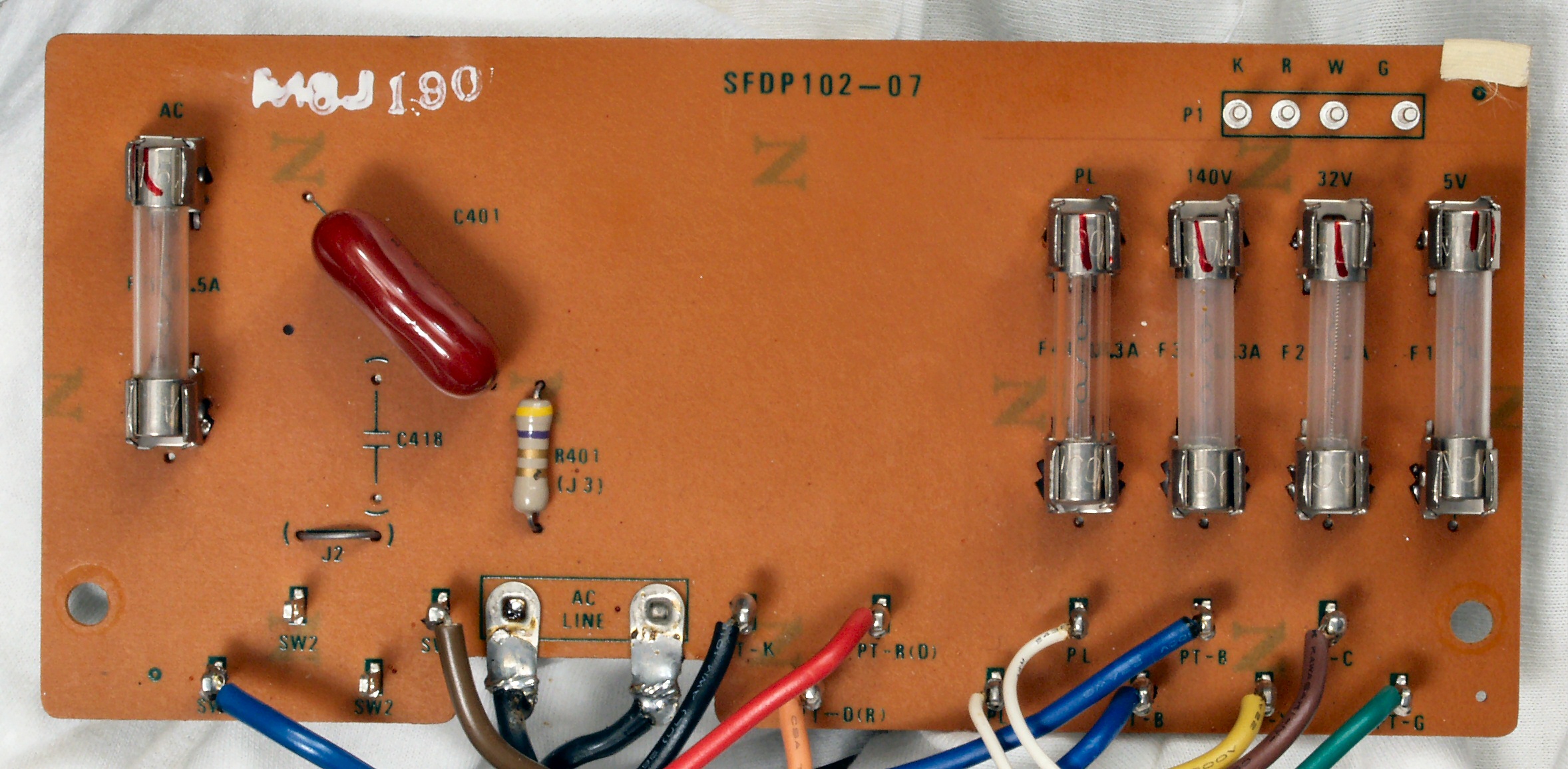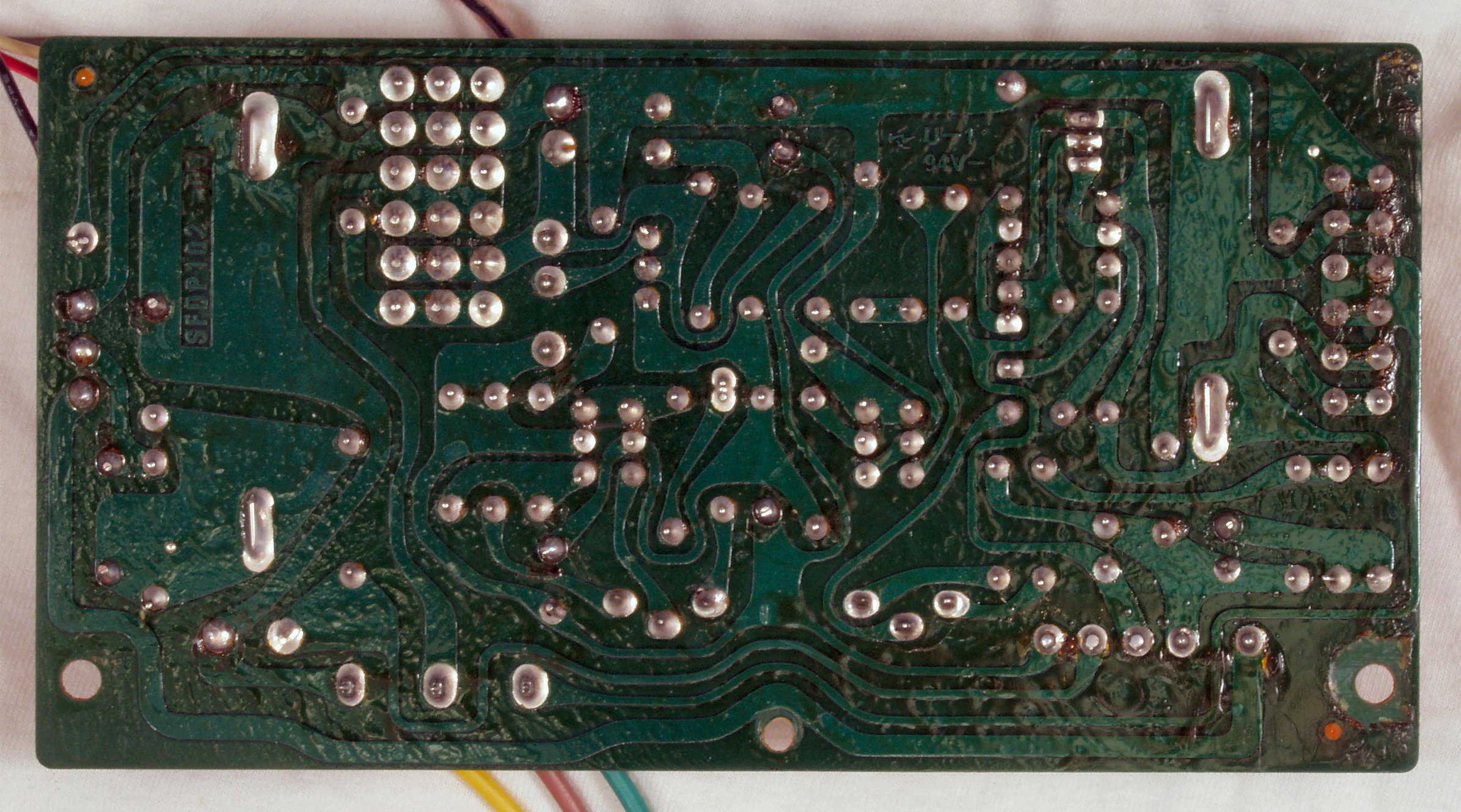 | C23. 修理(半田補正)後 電源ヒューズ基板裏。全ハンダをやり直す。 | ||||||||||||||||||||||||||||||