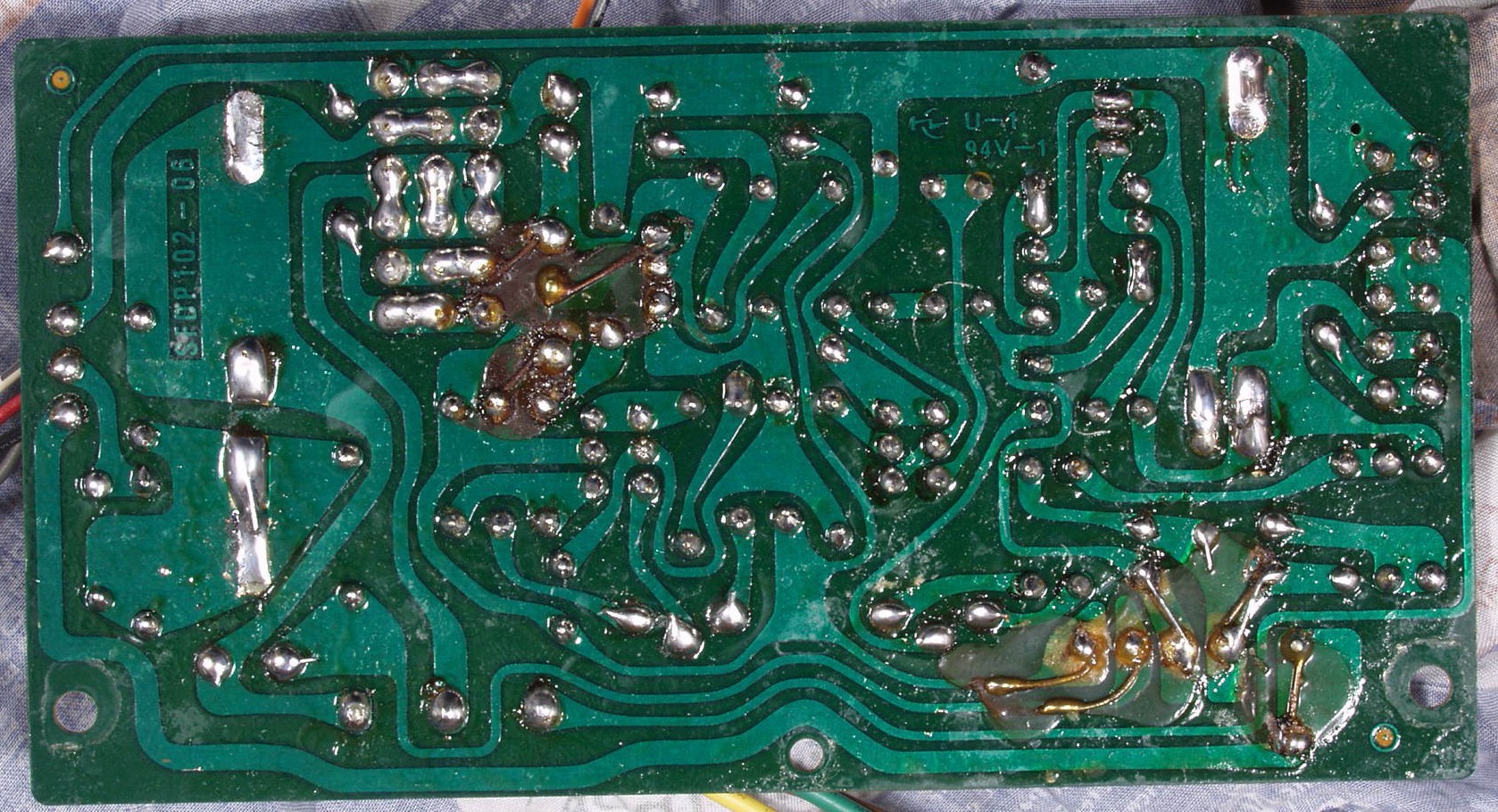 | C−1D. 修理(半田補正)後 電源定電圧基板裏。全ハンダをやり直す。 | ||||||||||||||||||||||||||||||