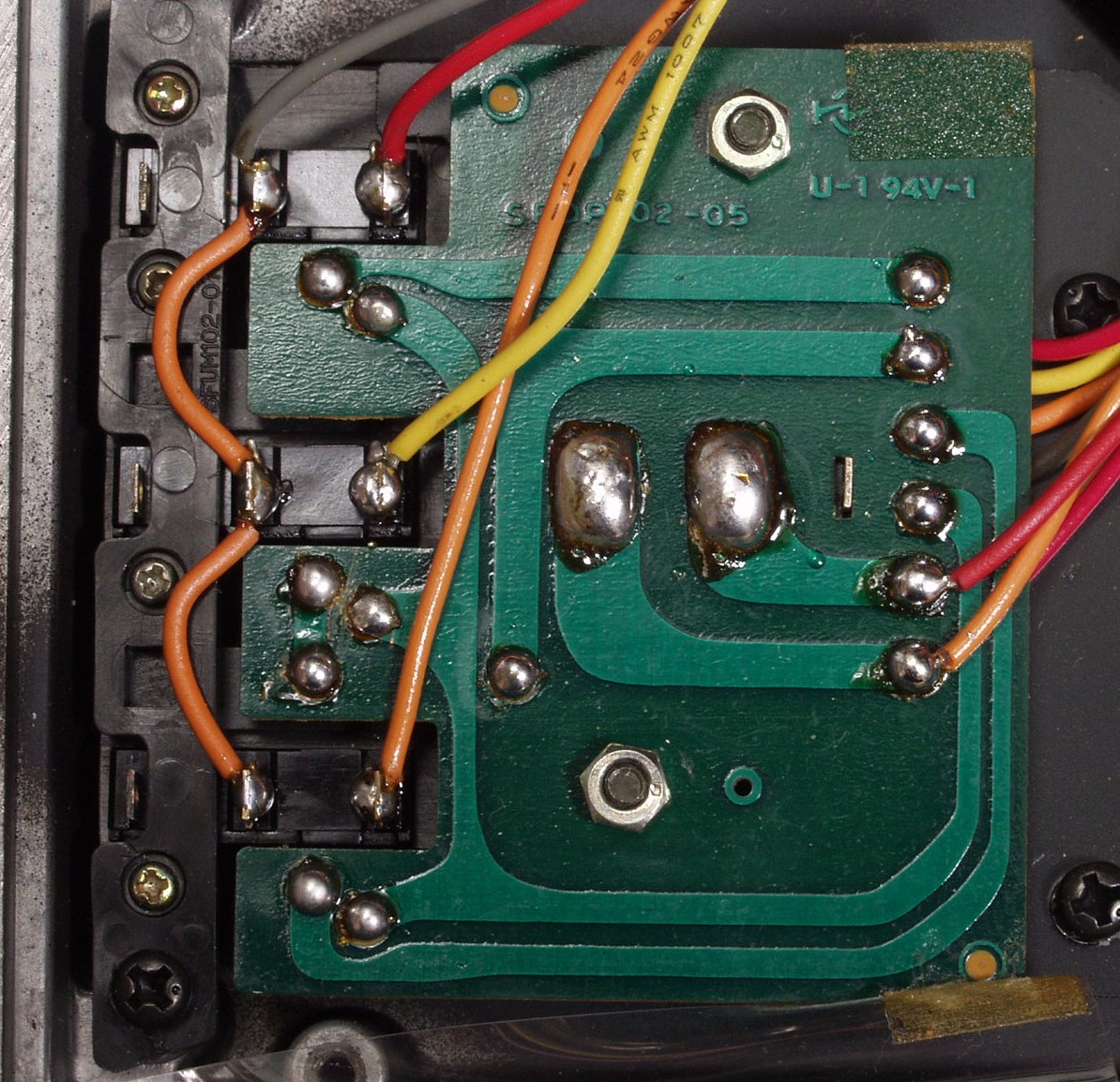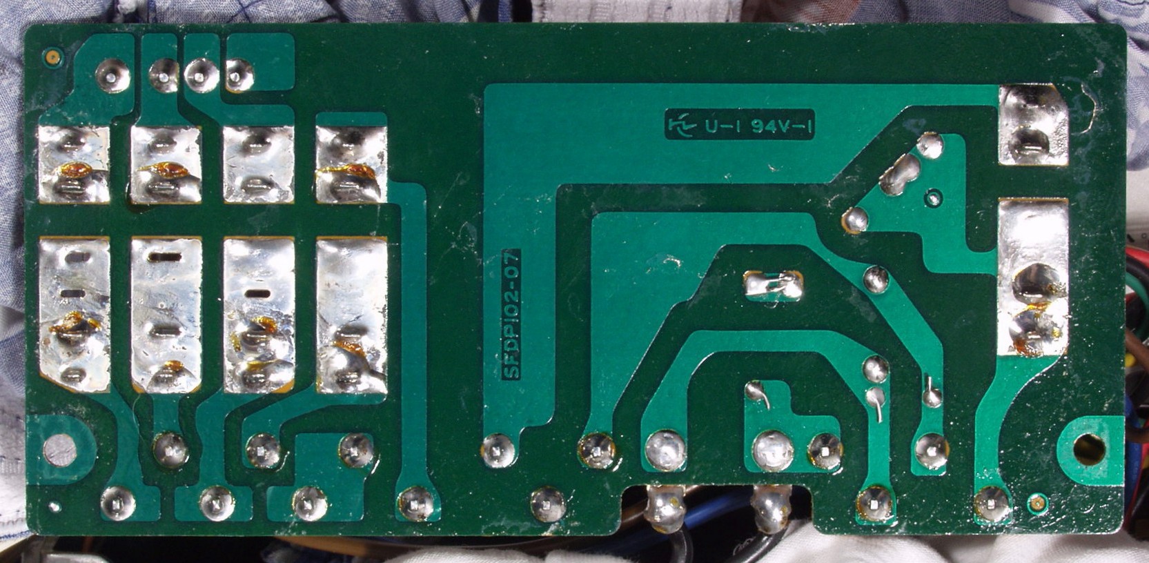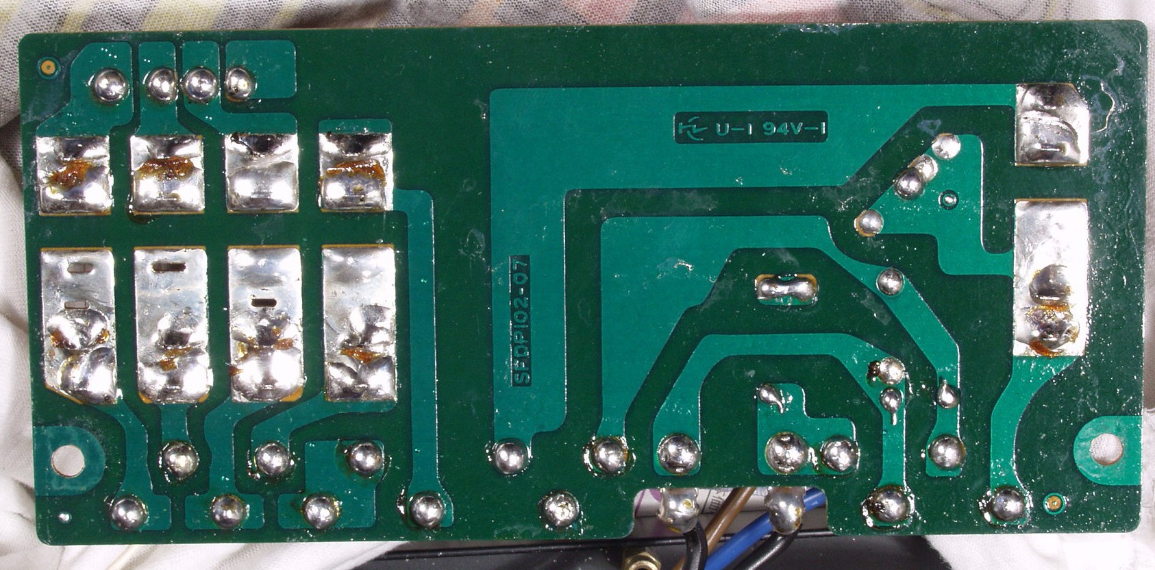 | C−2C. 修理(半田補正)後 電源ヒューズ基板裏。全ハンダをやり直す。 | ||||||||||||||||||||||||||||||