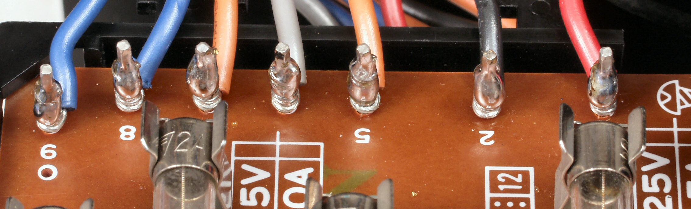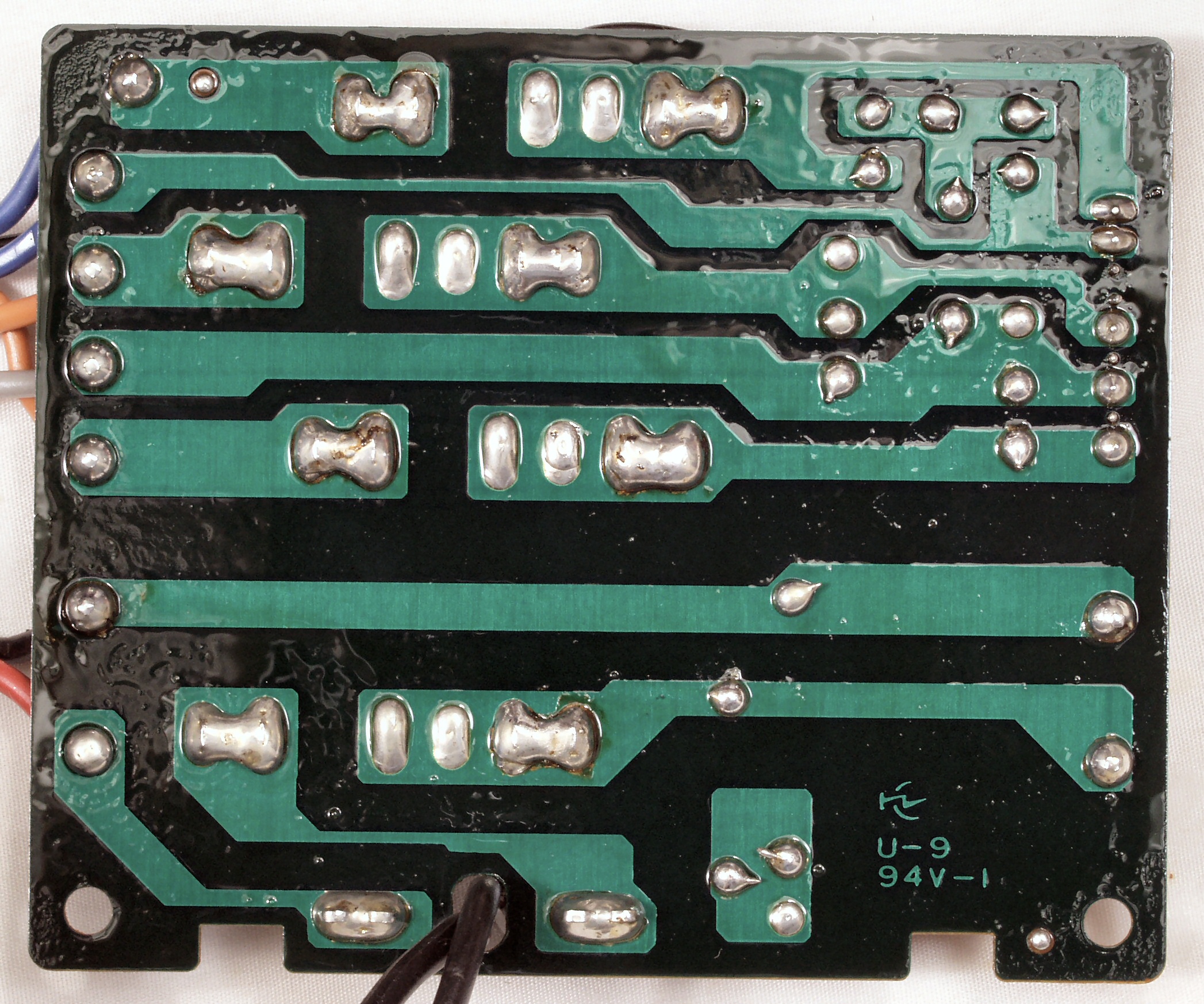 | C−6H. 完成ヒューズ基板裏。余分なフラックスを落として、コート液を塗る。 | ||||||||||||||||||||||||||||||||||||||