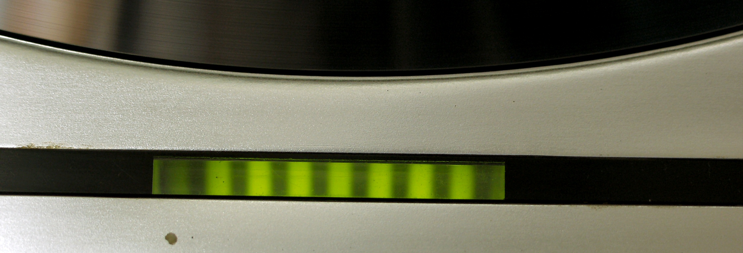 | E. 測定・調整 E−1. 測定 33回転。 ストロボが1部欠けているのは、斜めに撮影したのと、シャッターとの同期の為 |