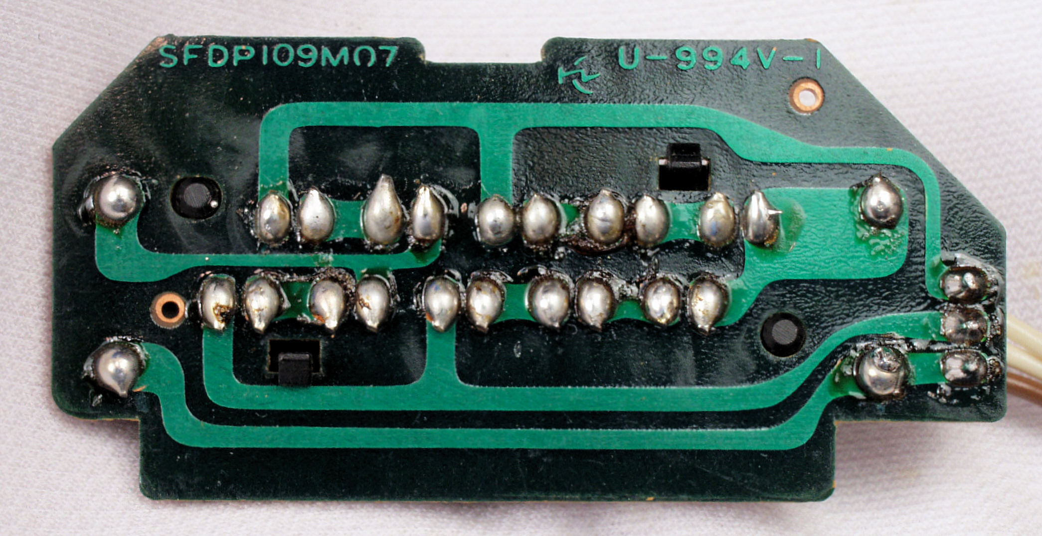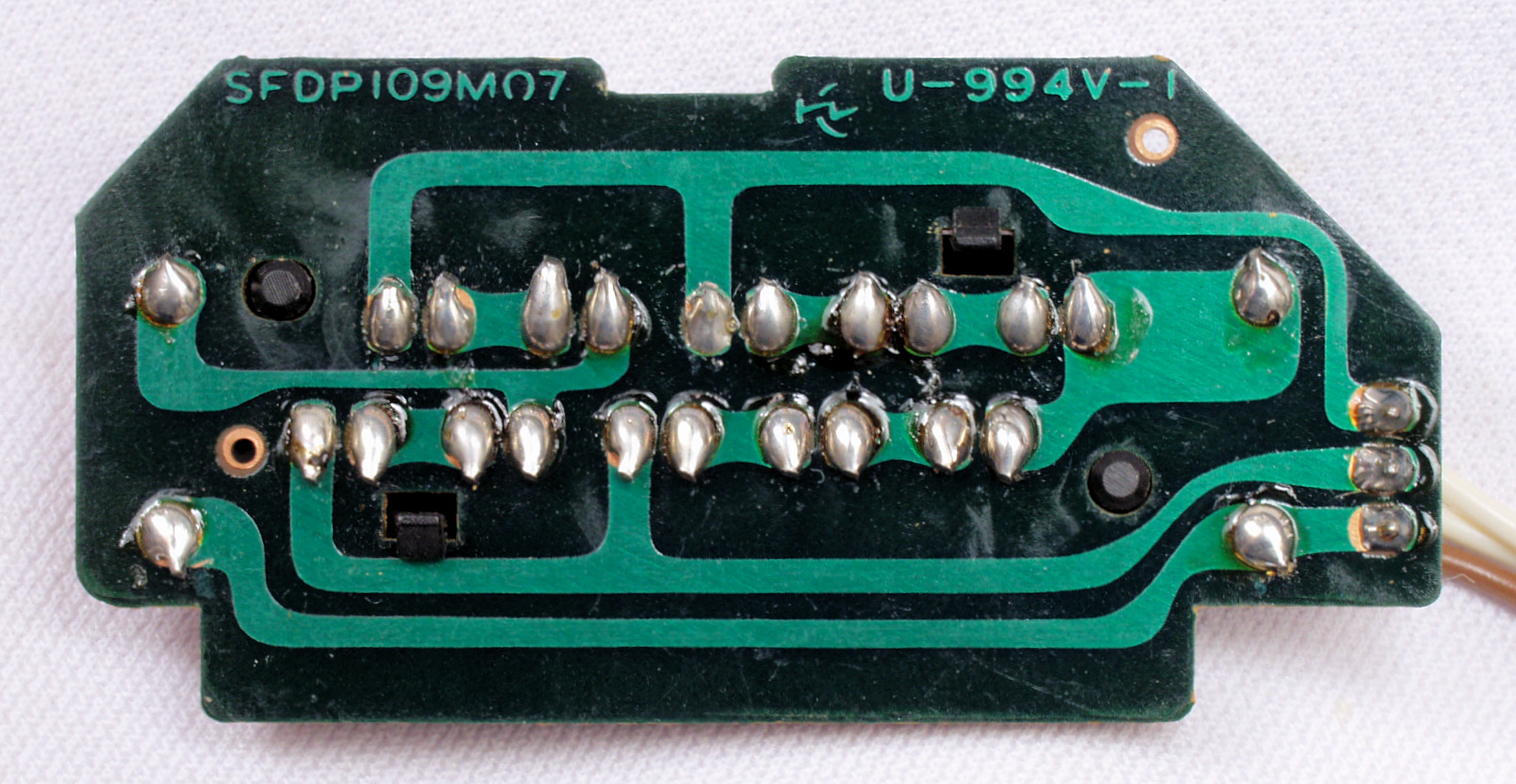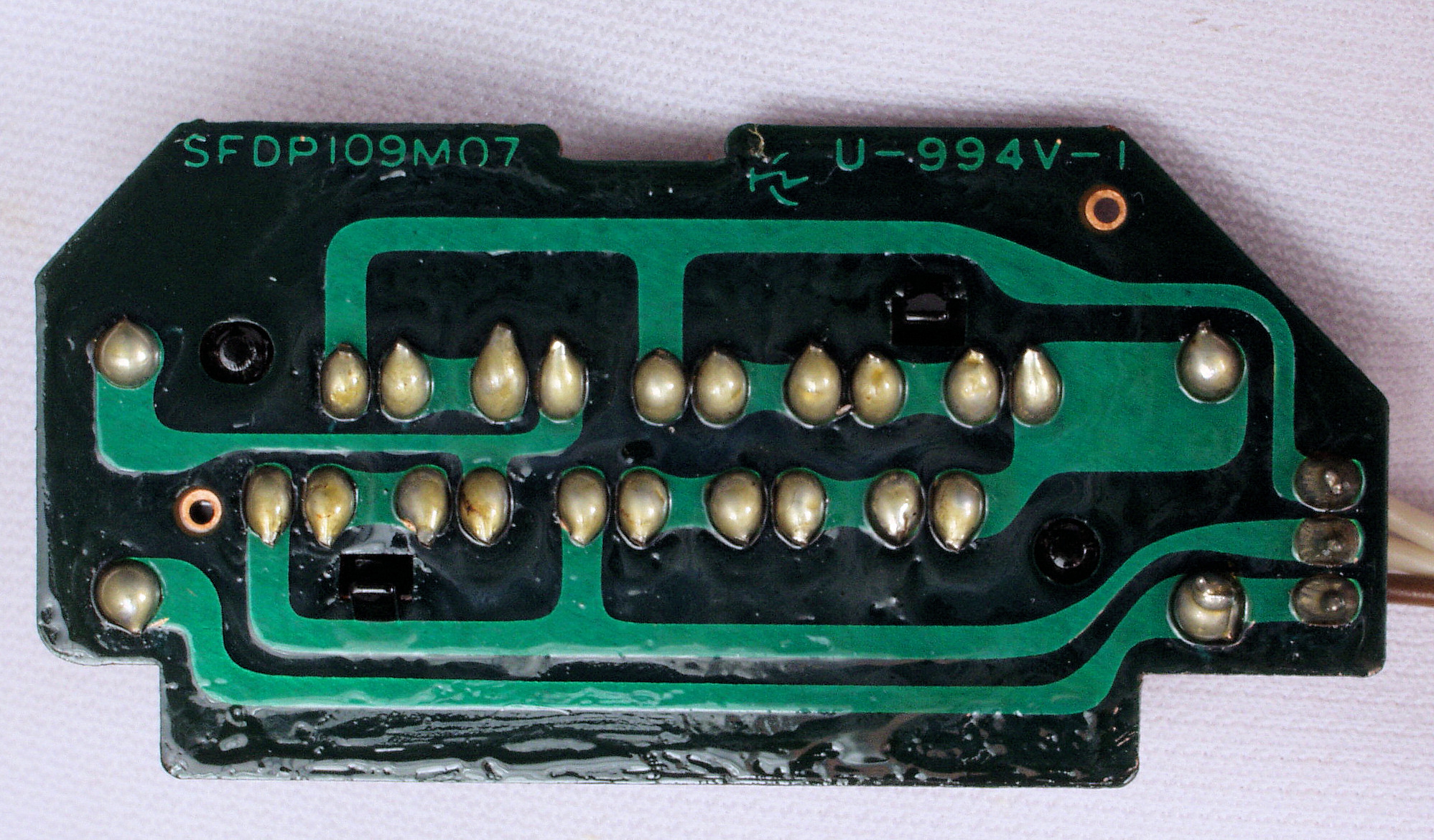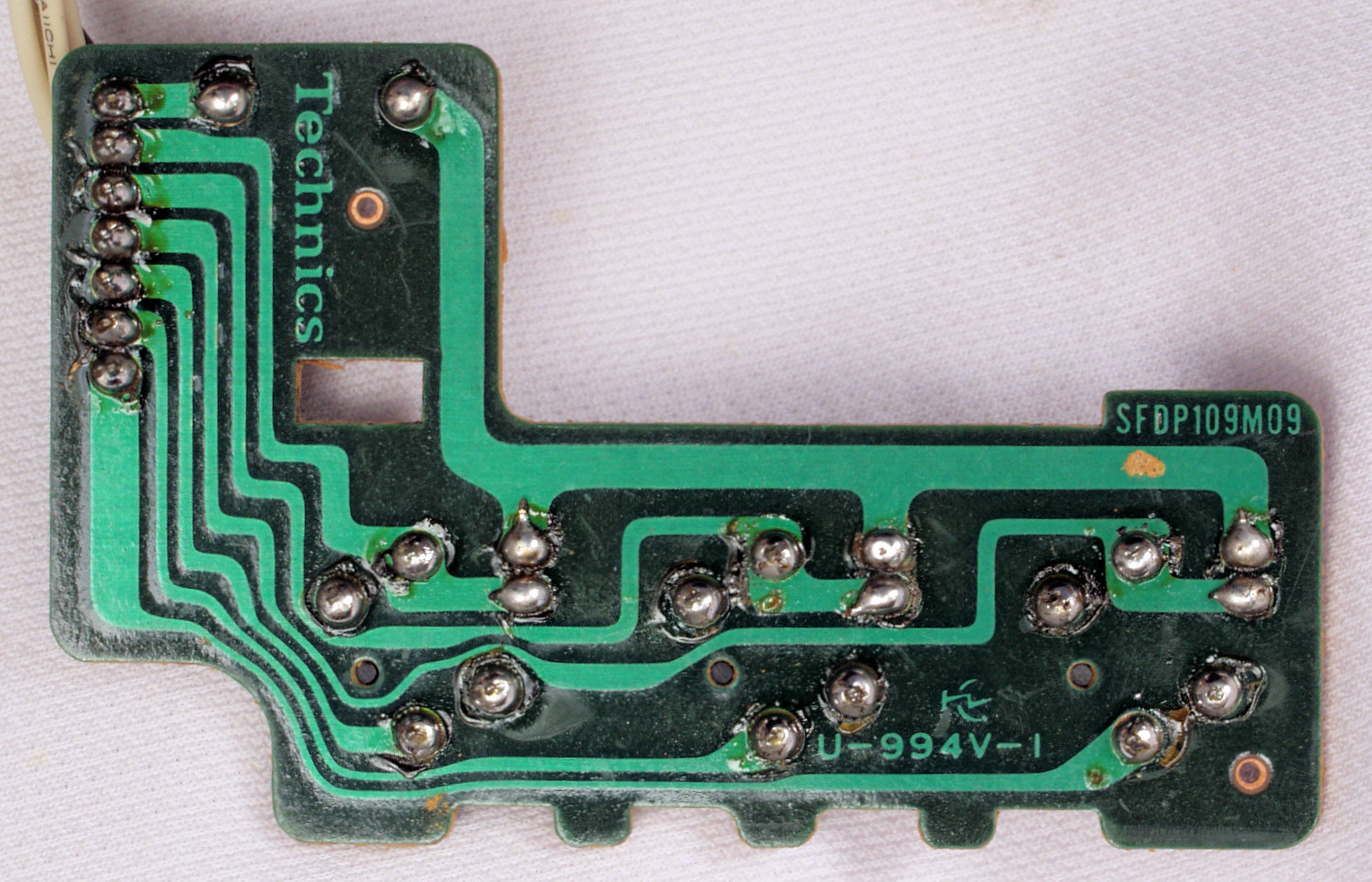 | D35. 完成ターンテーブル操作基板基板裏。 余分なフラックスを落として、コート液を塗る。 | ||||||||||||||||||||||||||||||||||||||