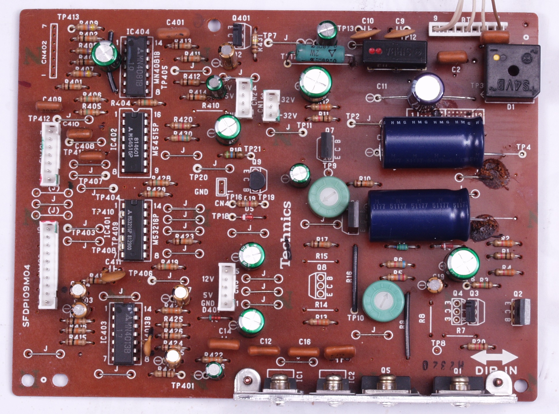 | C−3A. 修理前 操作回路基板、真ん中のC-MOS−LSIが死んでいる | ||||||||||||||||||||||||||||||||||||||