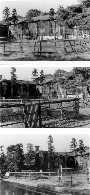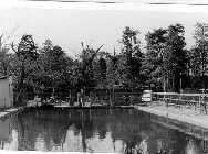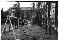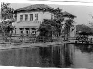 洗面所と布団干し場 北寮前の物干し プ−ル南側より記念館を望む