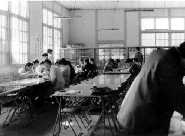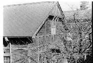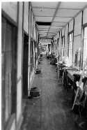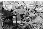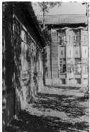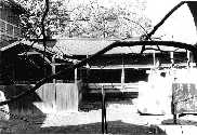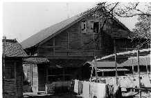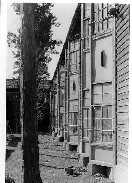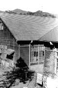 南寮より摂生を見る  食堂南,手前は体育館 洗面所と布団干し場,奥が食堂