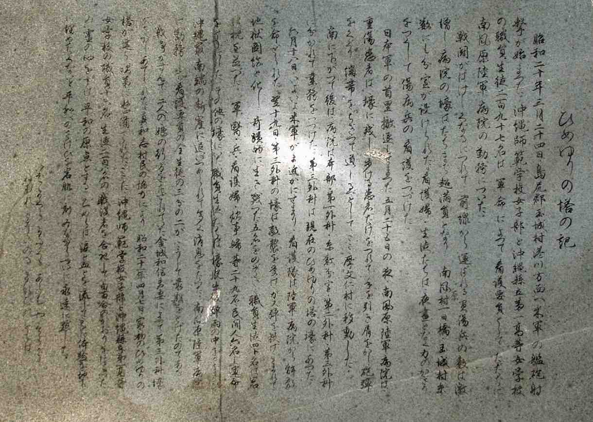 | 3.ひめゆり学徒隊のたどった運命が記述されている石碑 右の拡大表示すると読めます |