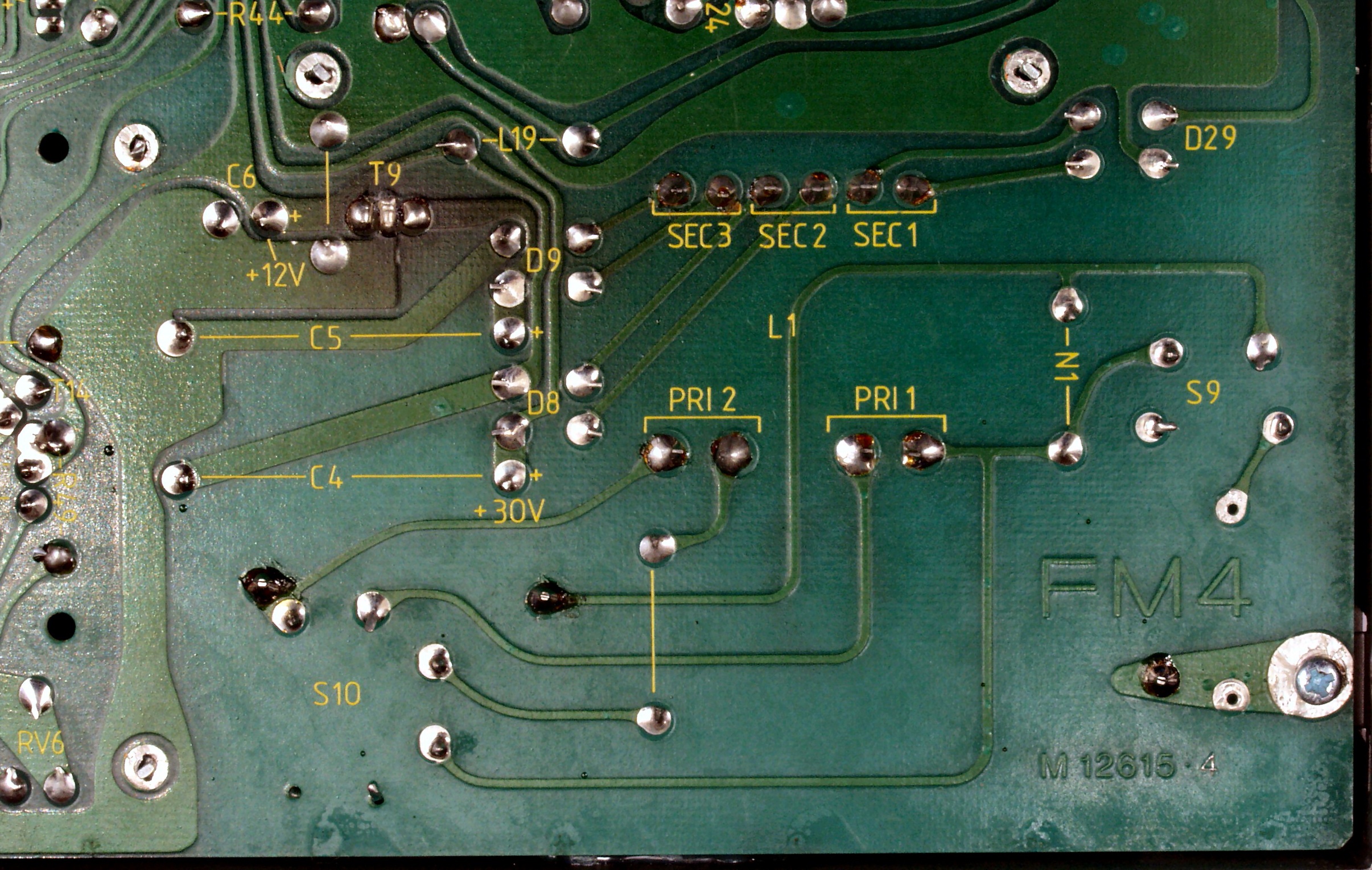 | C32. 修理後 基板電源部、電解コンデンサー3個、フイルムコンデンサー1個交換 | ||||||||||||||||||||||||||||||||||||||||||||||||