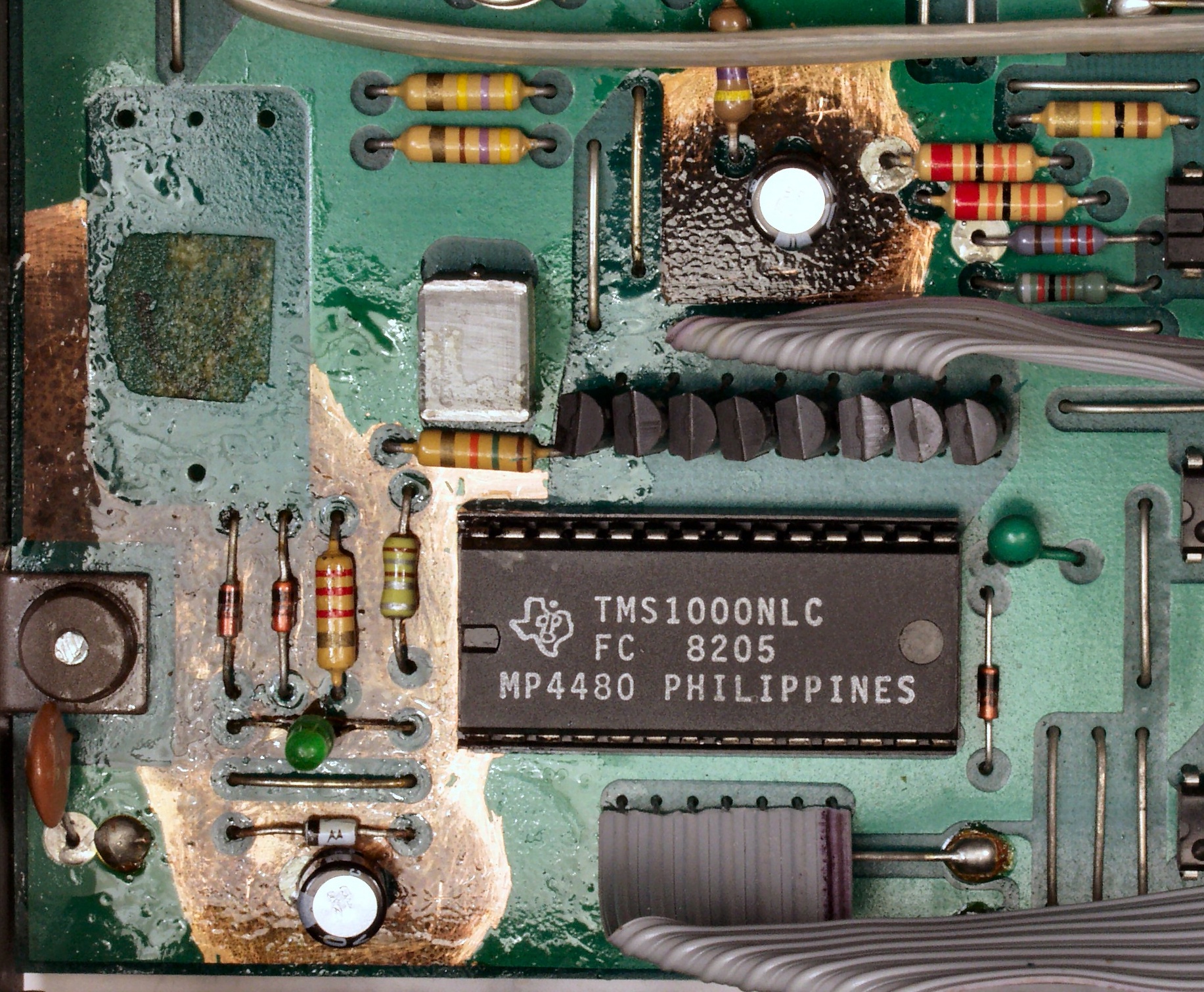 | A5. 点検中 電源部、左下の茶色い電解コンデンサーもヒビが入っている。 | ||||||||||||||||||||||||||||||||||||||||||||||||
