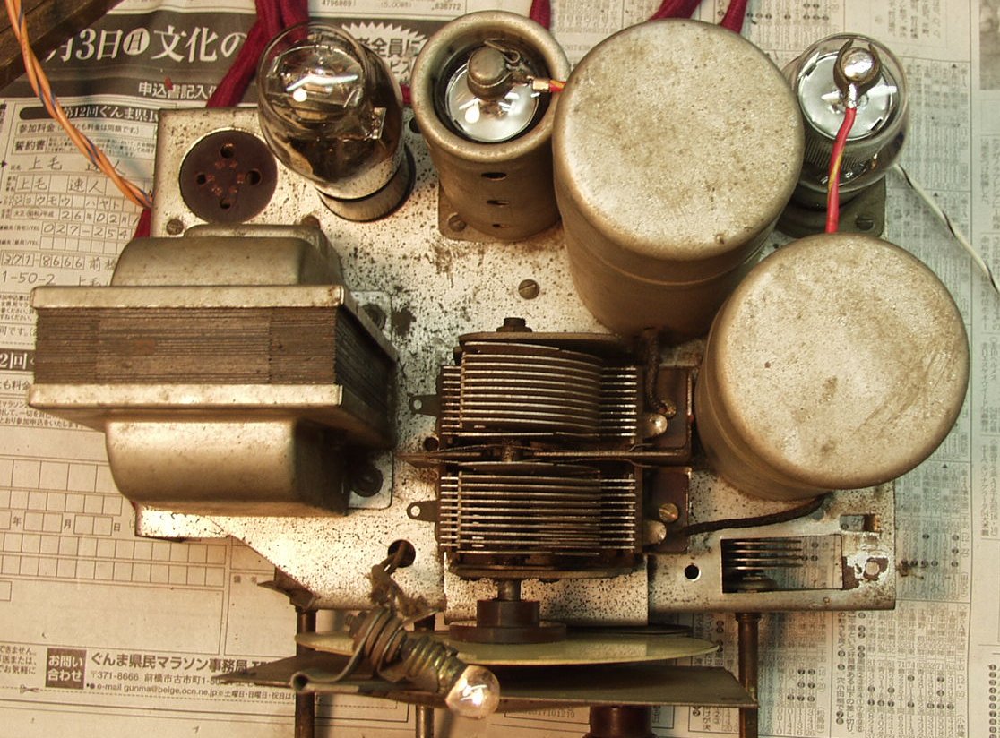 真空管の構成 24B−24B−47B 12B 直熱菅なので、大容量コンデンサ−使用でも、ハムは残ります