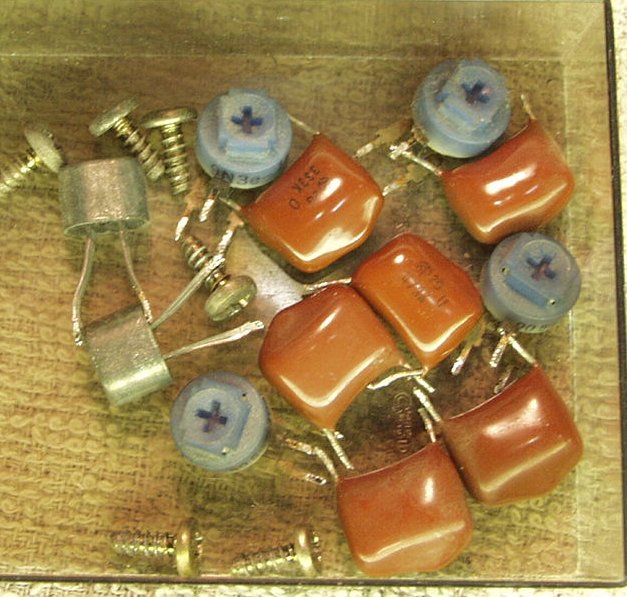 | 7.ドライブ基板修理後、交換部品は半固定VR=4個、複合FET(電界効果トランジスター)=2個 音質改善のため、ペーパー・コンデンサーをメタライズド・フイルムコンデンサーに交換 |