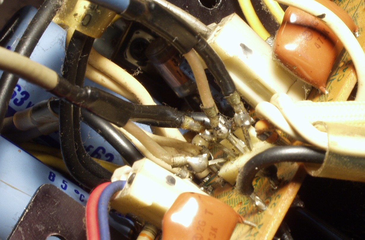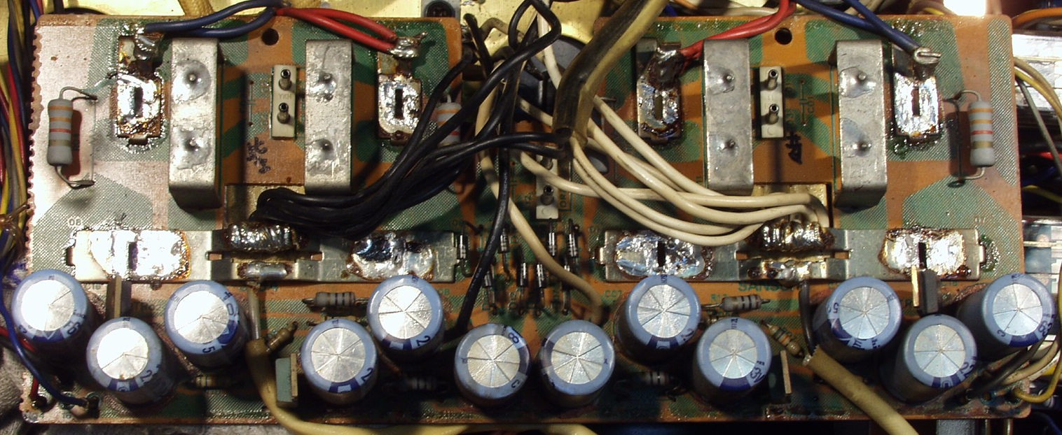 A−1. 修理前 上から 707より、多くの電解コンデンサーが使われている、容量も大きい