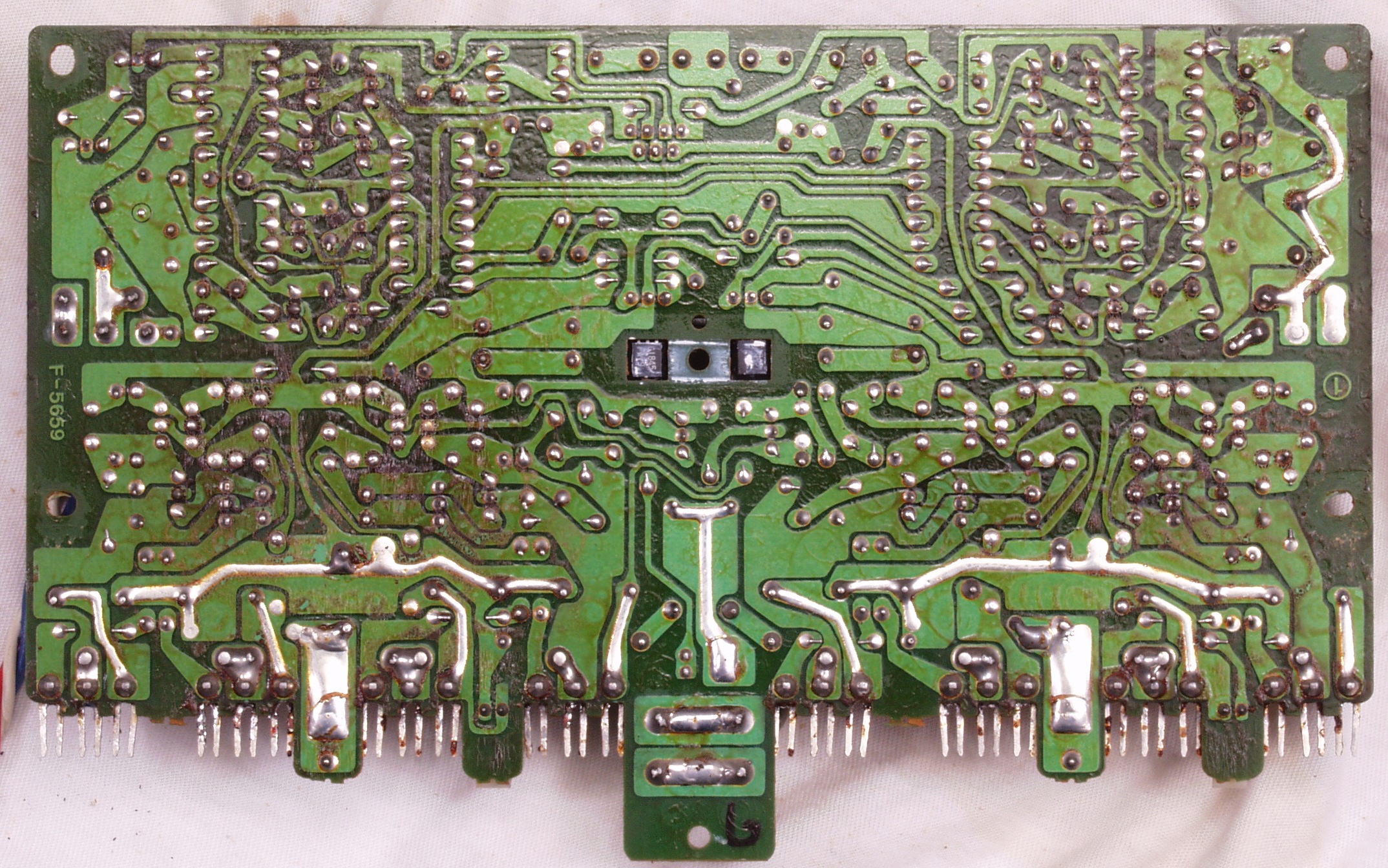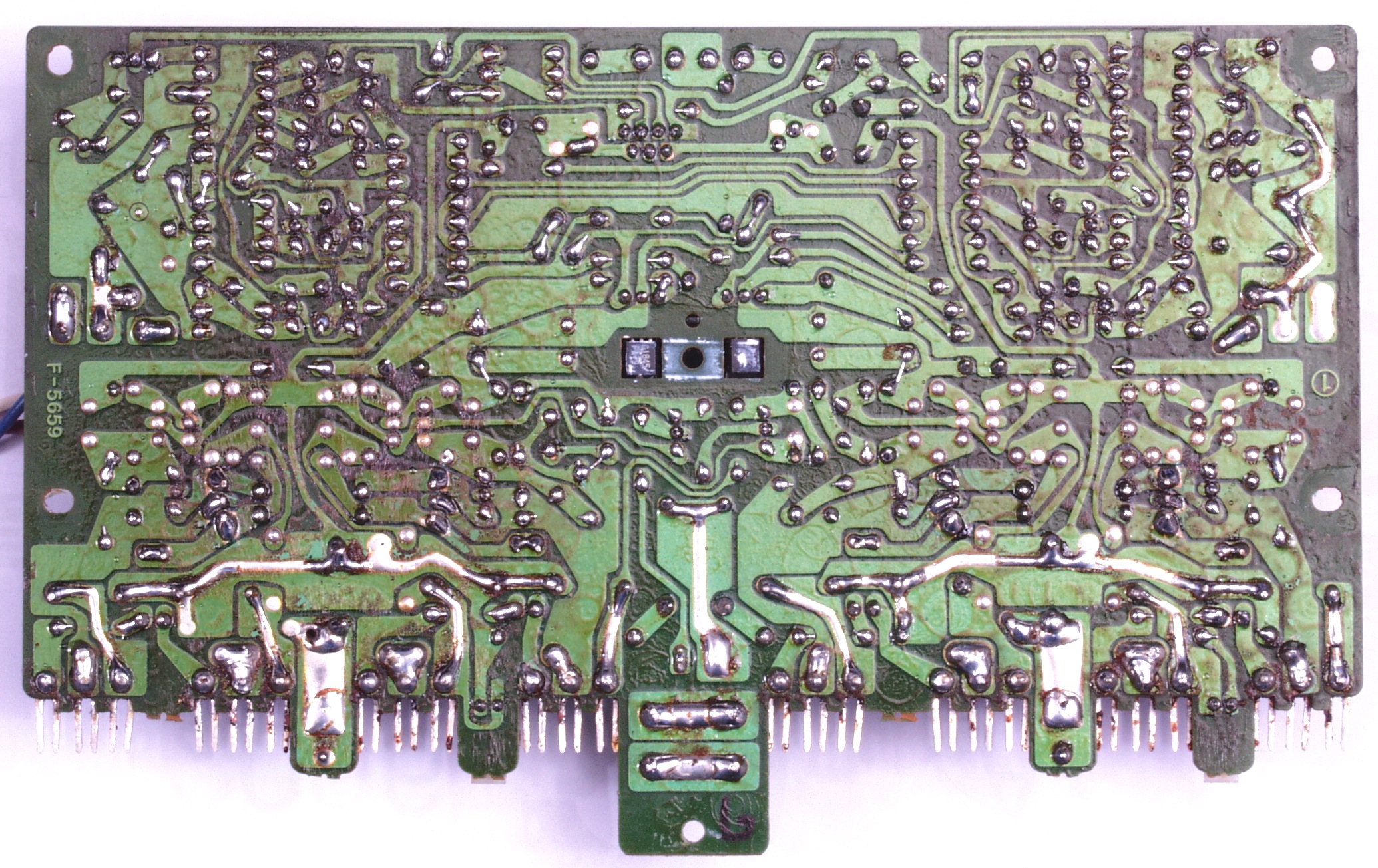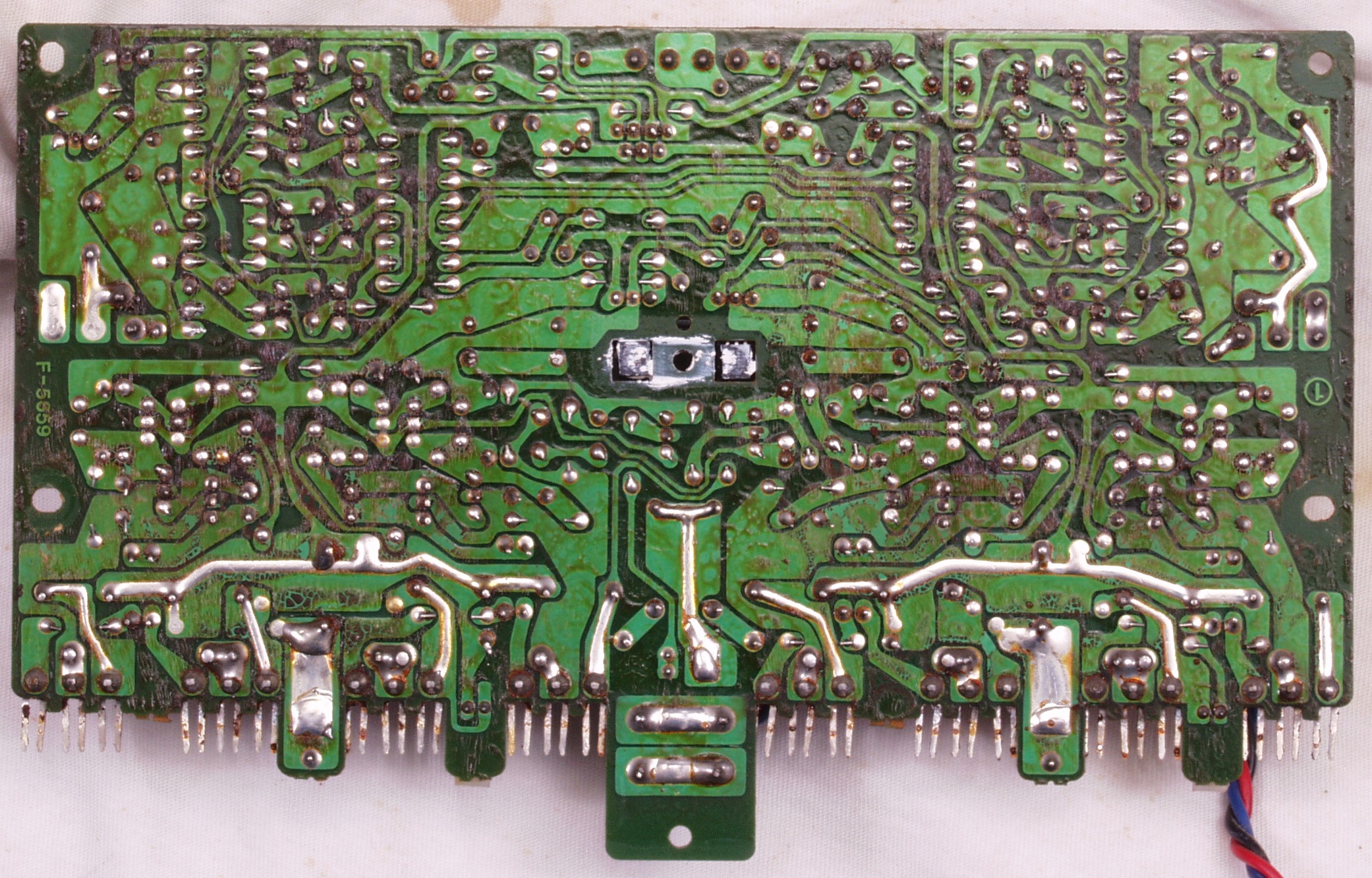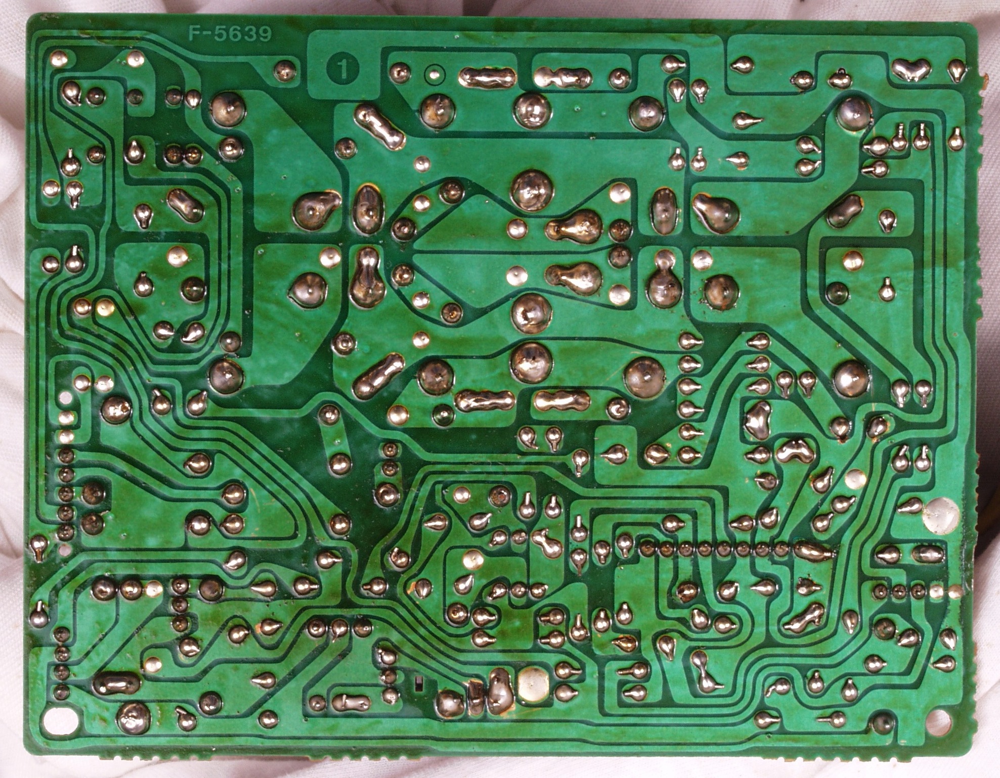 | CD61. 修理前 SP接続リレー&プロテクト基板裏 何かこぼしたのか基板が腐食している | ||||||||||||||||||||||||||||||||||||||||||||||||||