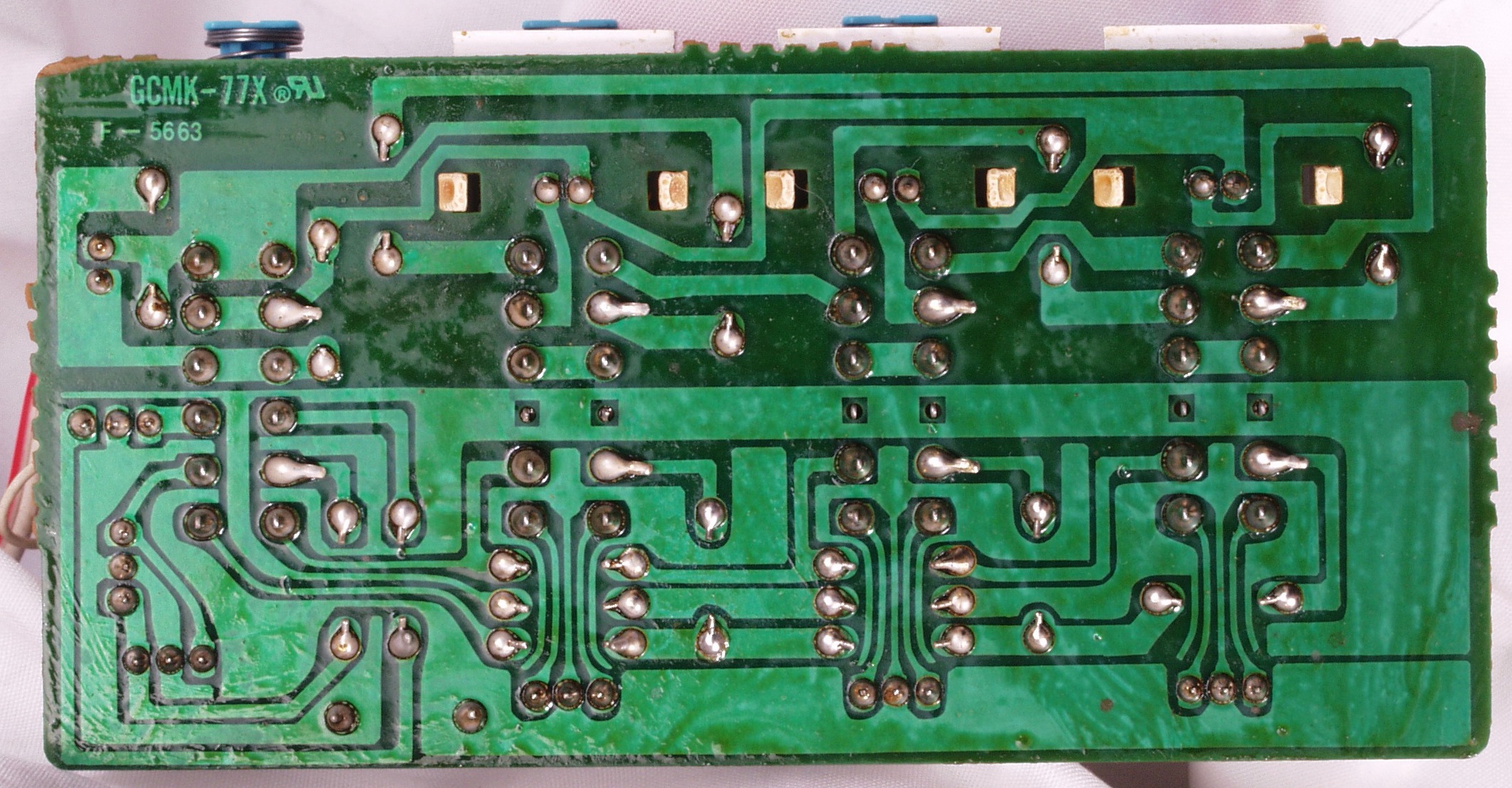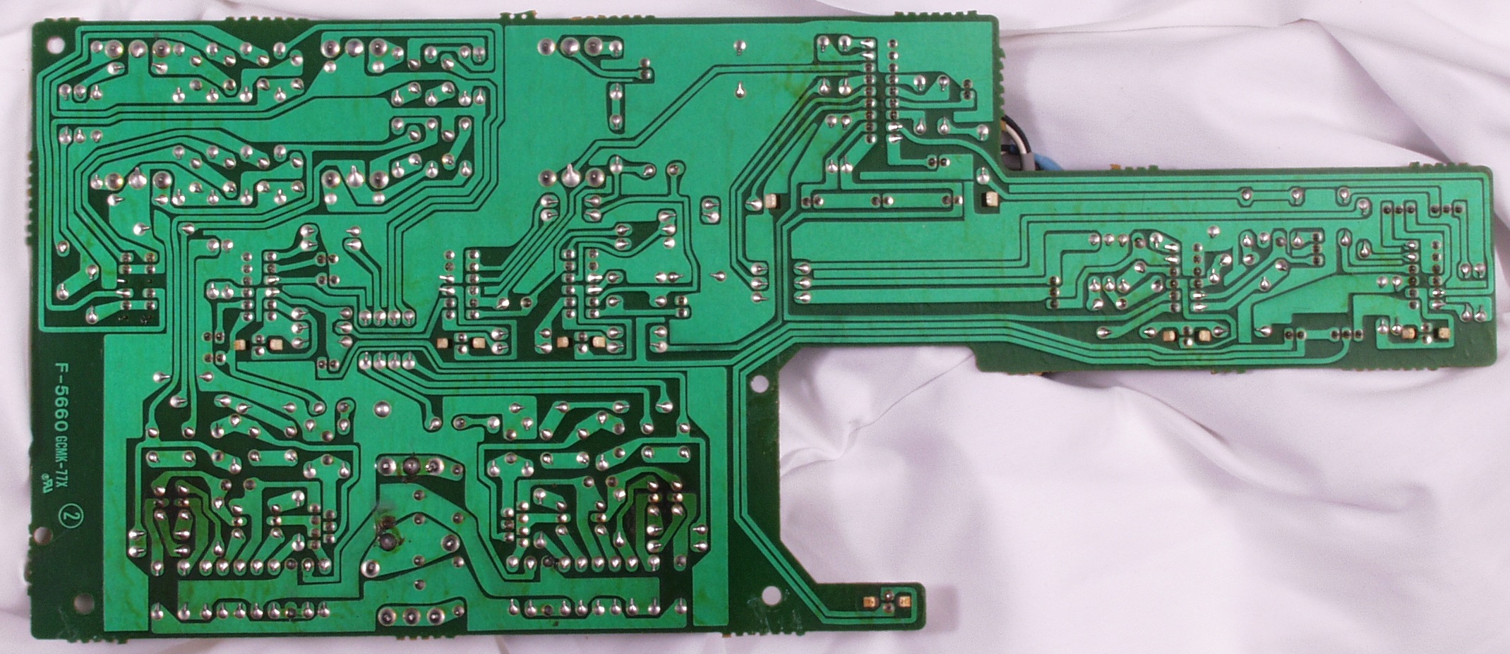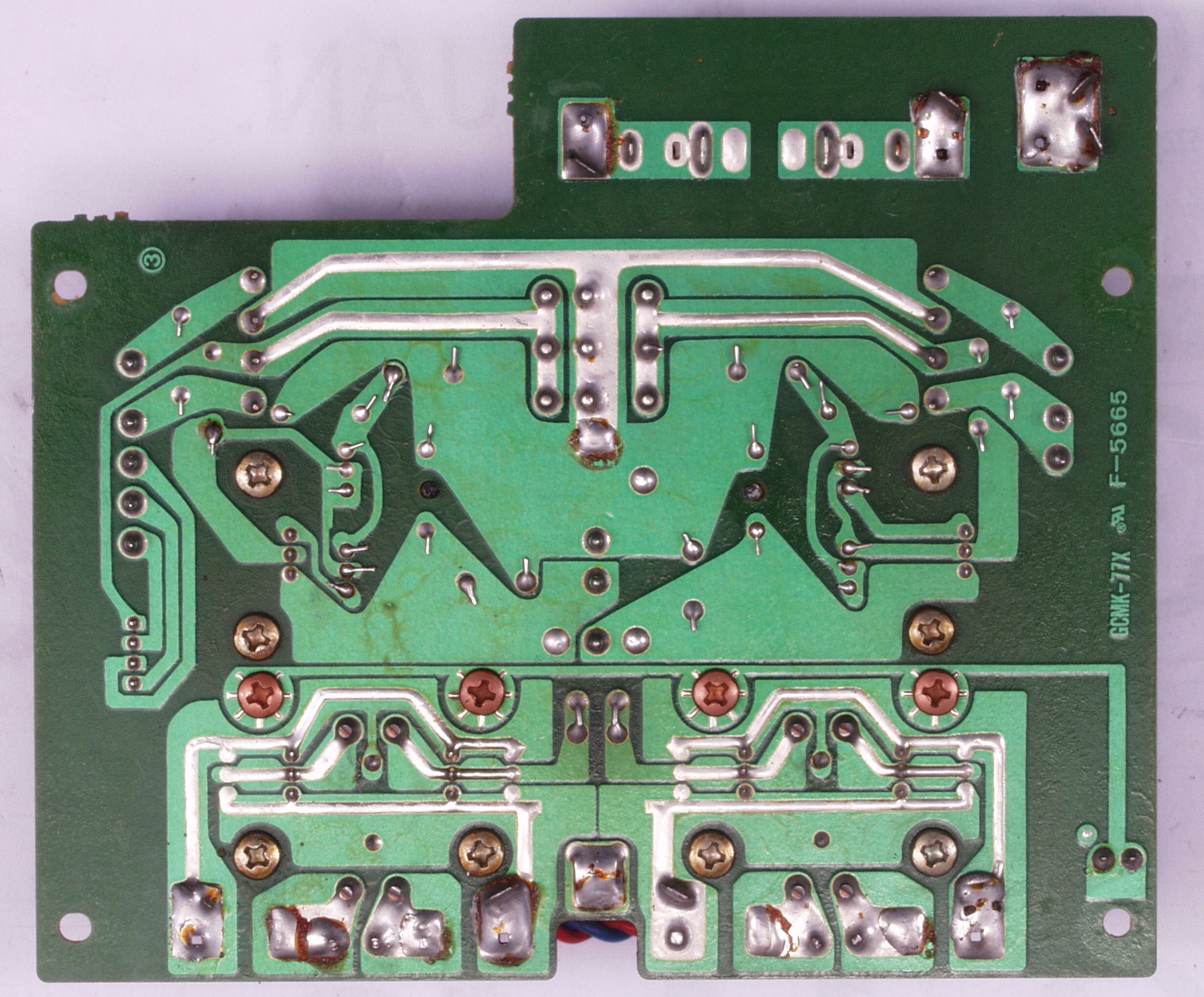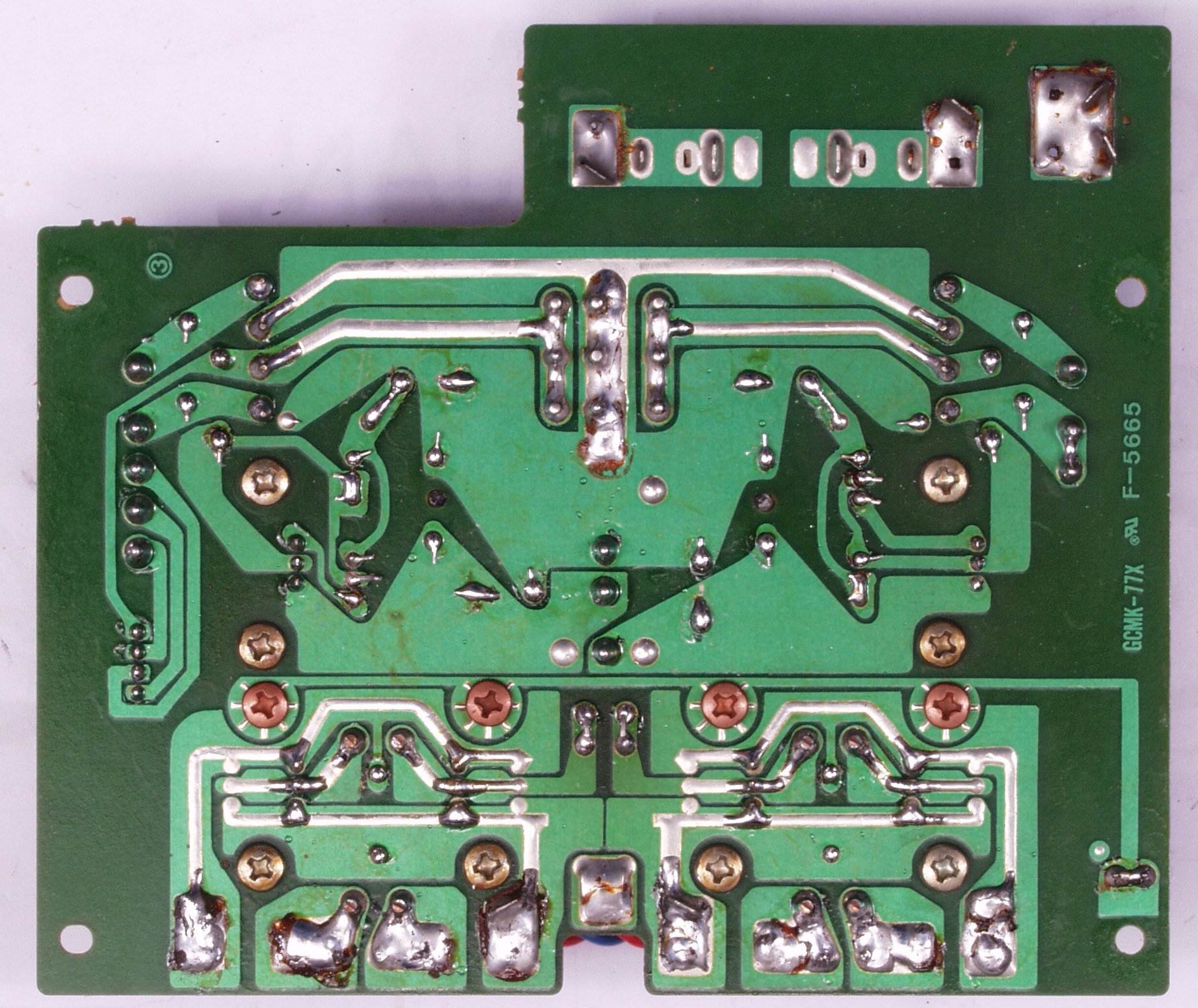 | CD61. 修理前 SP接続リレー&プロテクト基板裏 何かこぼしたのか基板が腐食している | ||||||||||||||||||||||||||||||||||||||||||||||||||