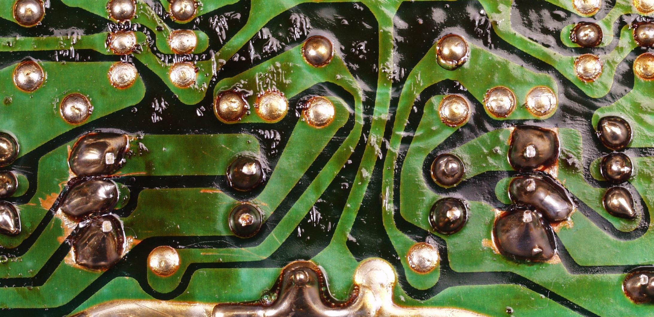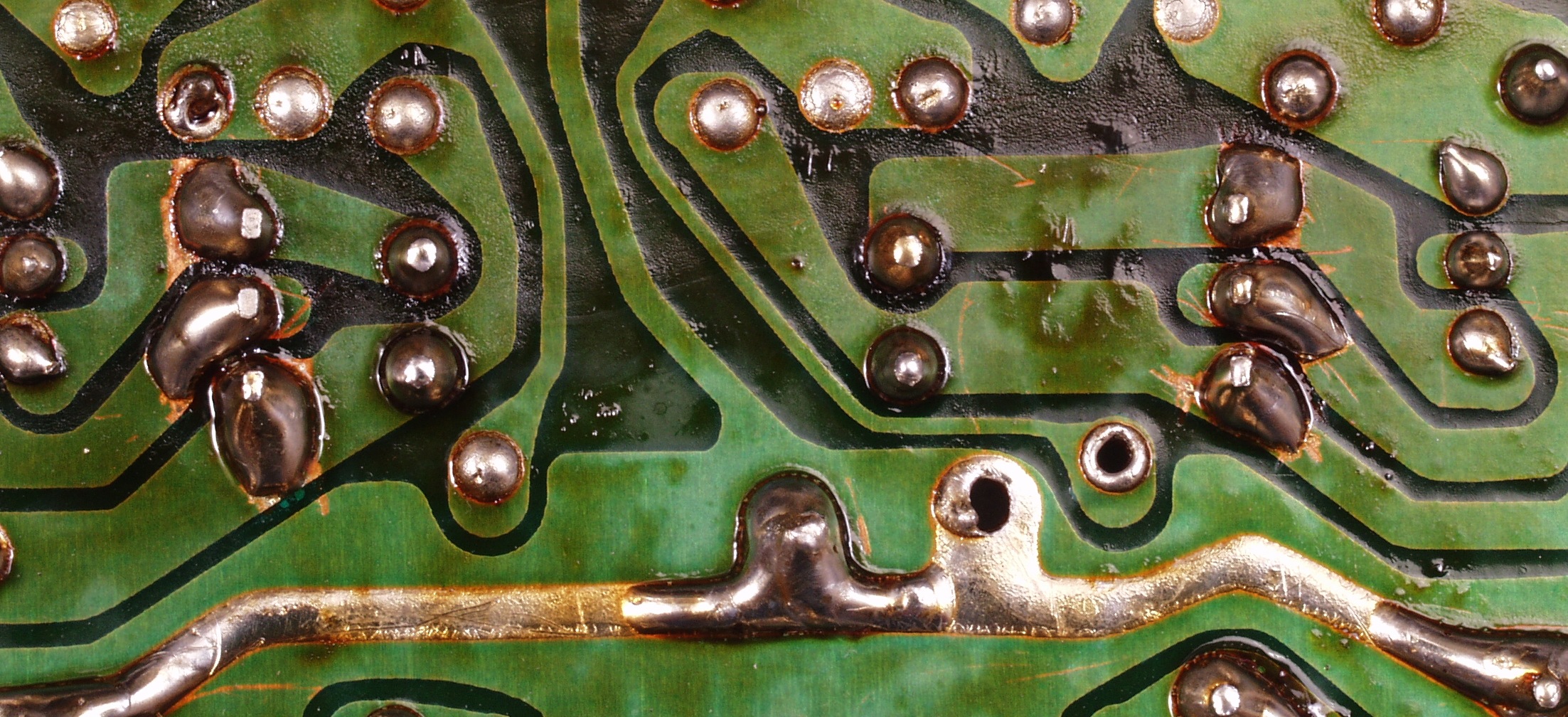| CE6. 修理(半田補正)後 R側終段基板裏 全ての半田をやり修す | ||||||||||||||||||||||||||||||||||||||||||||||||||