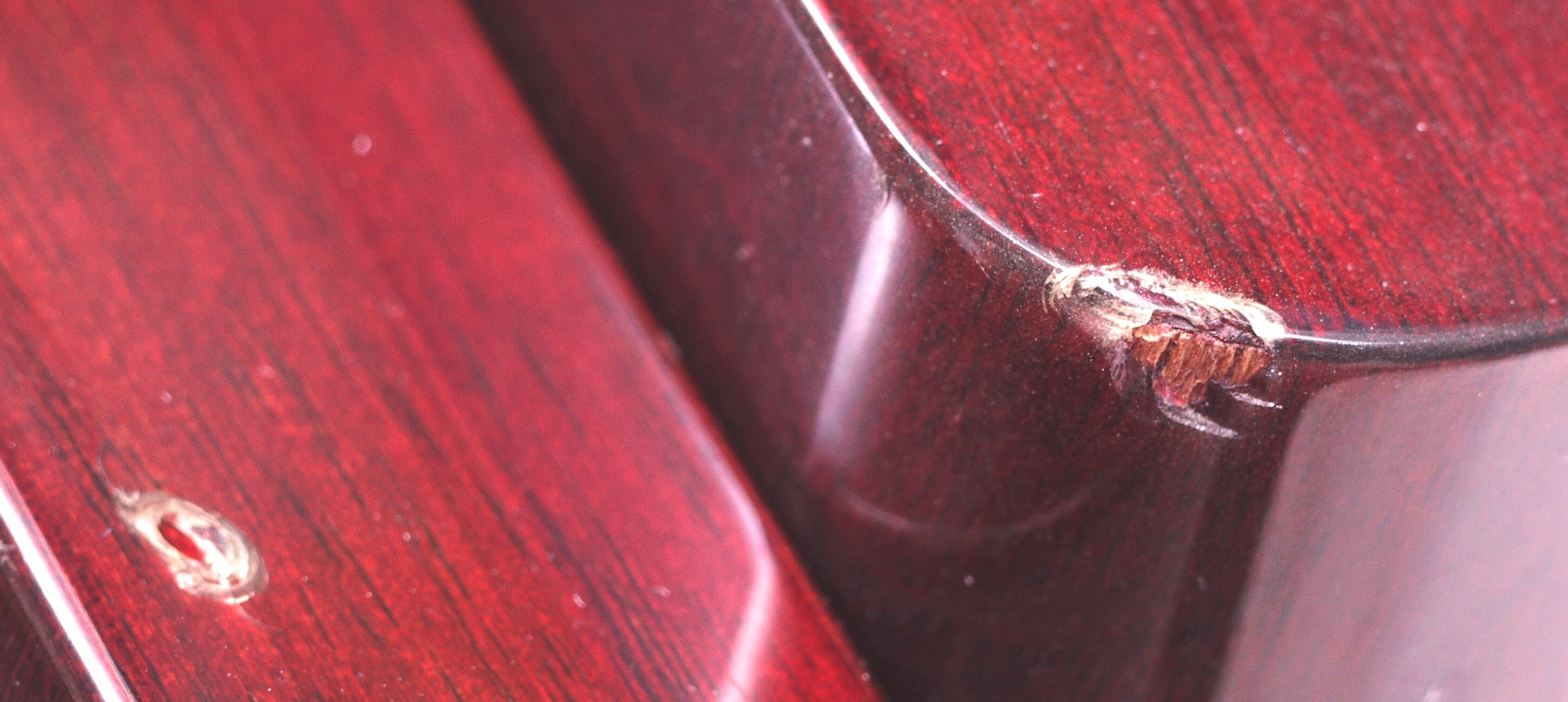 | CJ1. 修理前 側面木パネルの割れ(ヒビ)、この位の内に補修すると良い、ほっておくとドンドン広がる | ||||||||||||||||||||||||||||||||||||||||||||||||||