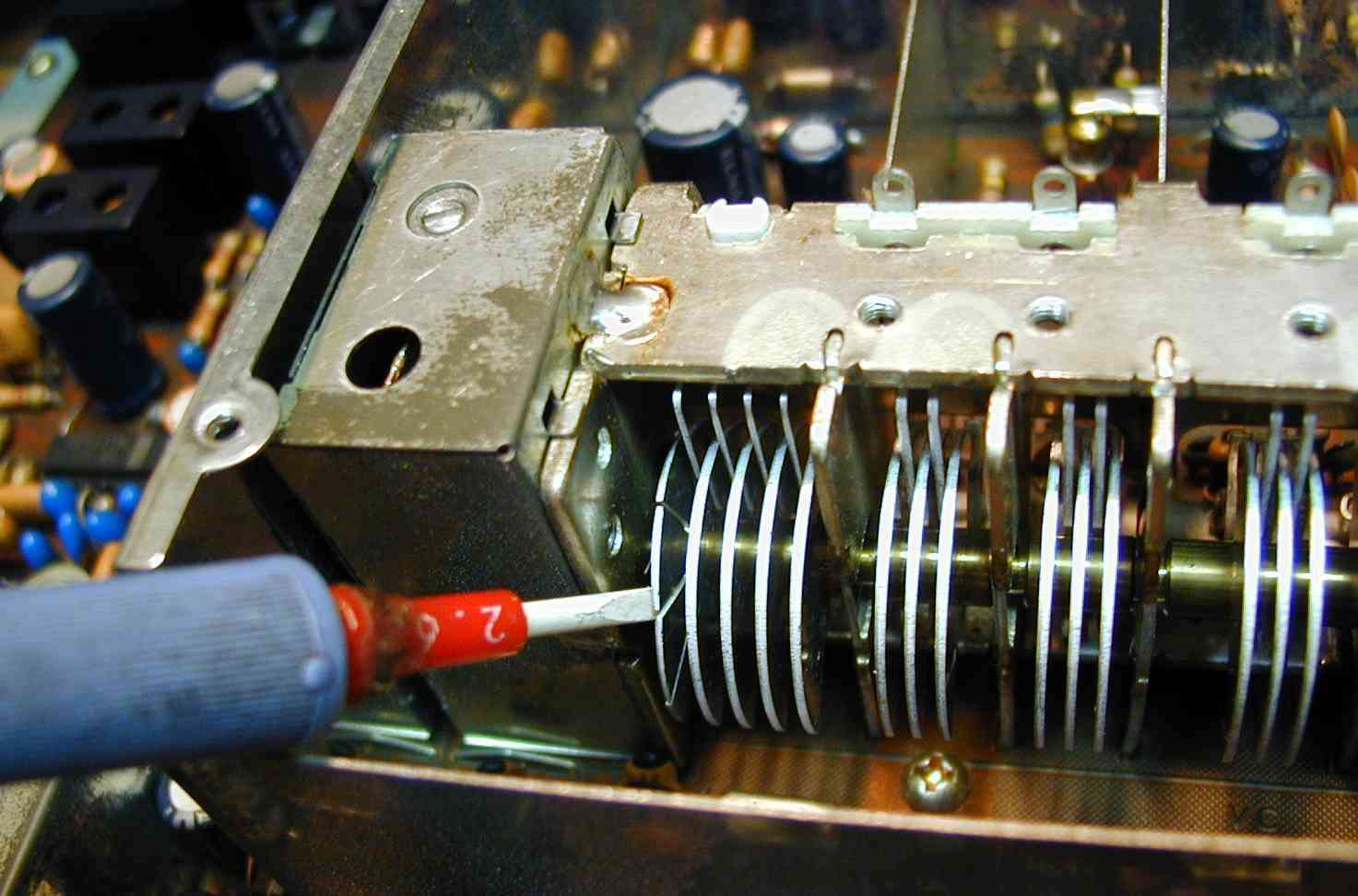 下の周波数はコイル(L)、上の周波数は(C)で調整する、3回くらい繰り返す。 |