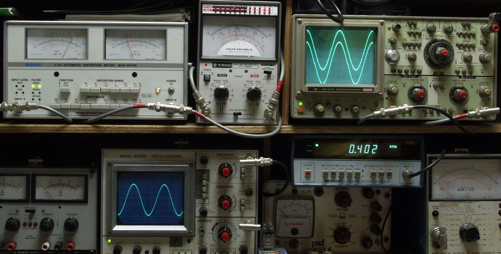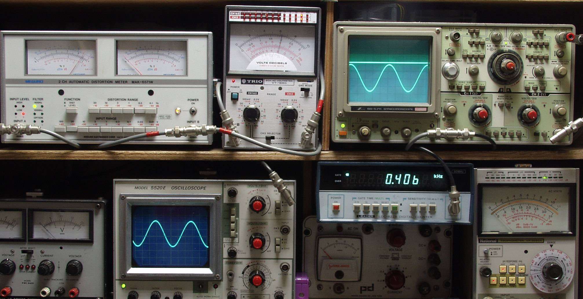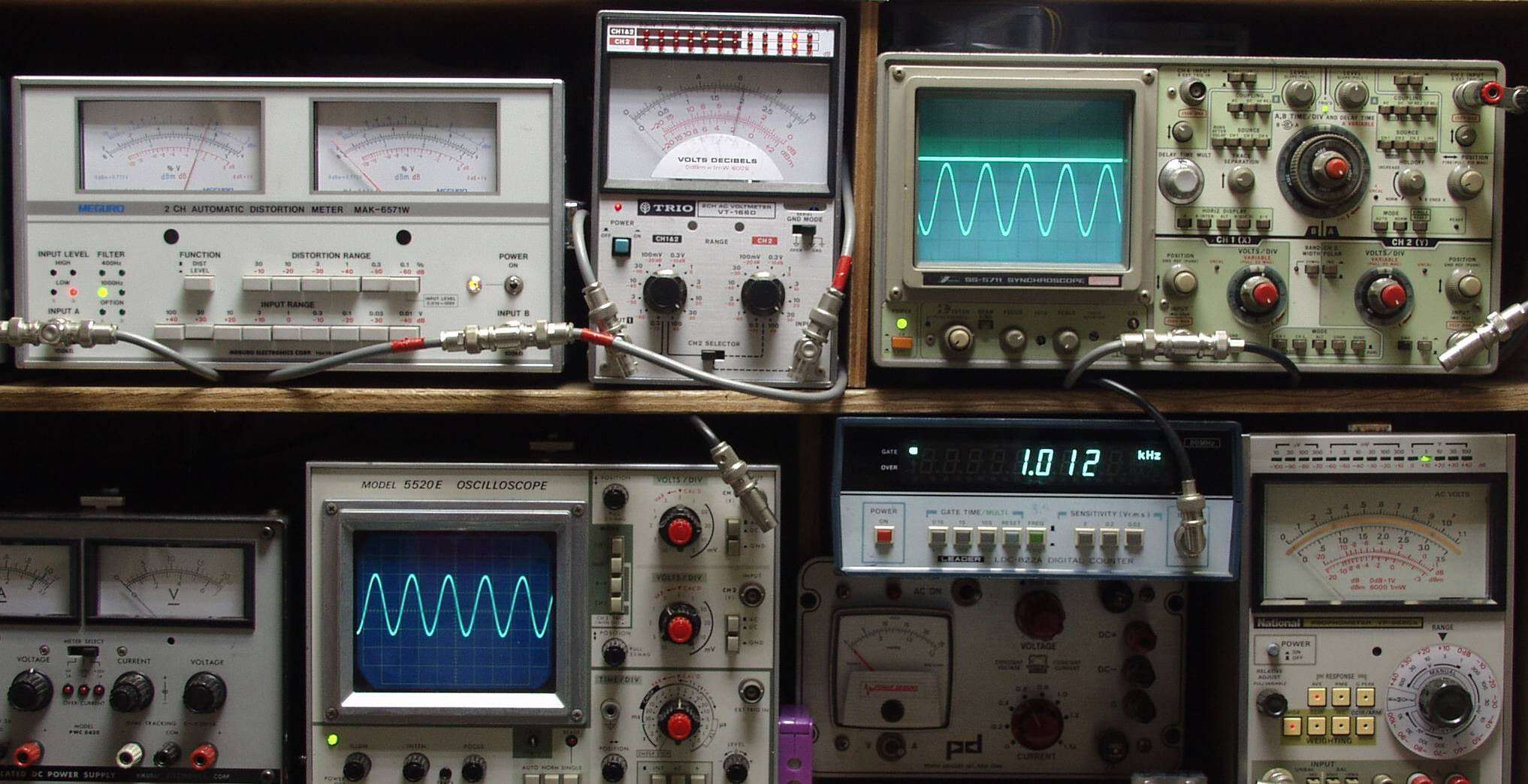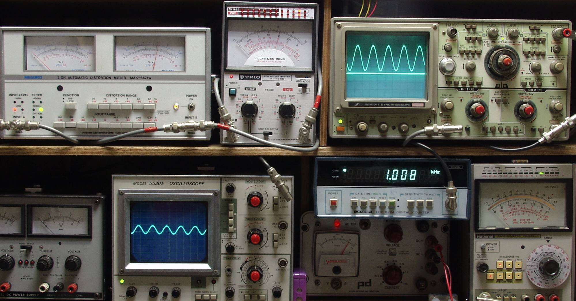 下左オーディオ発振器より400HZ・1KHZの信号を出す(歪み率=約0.003%)。