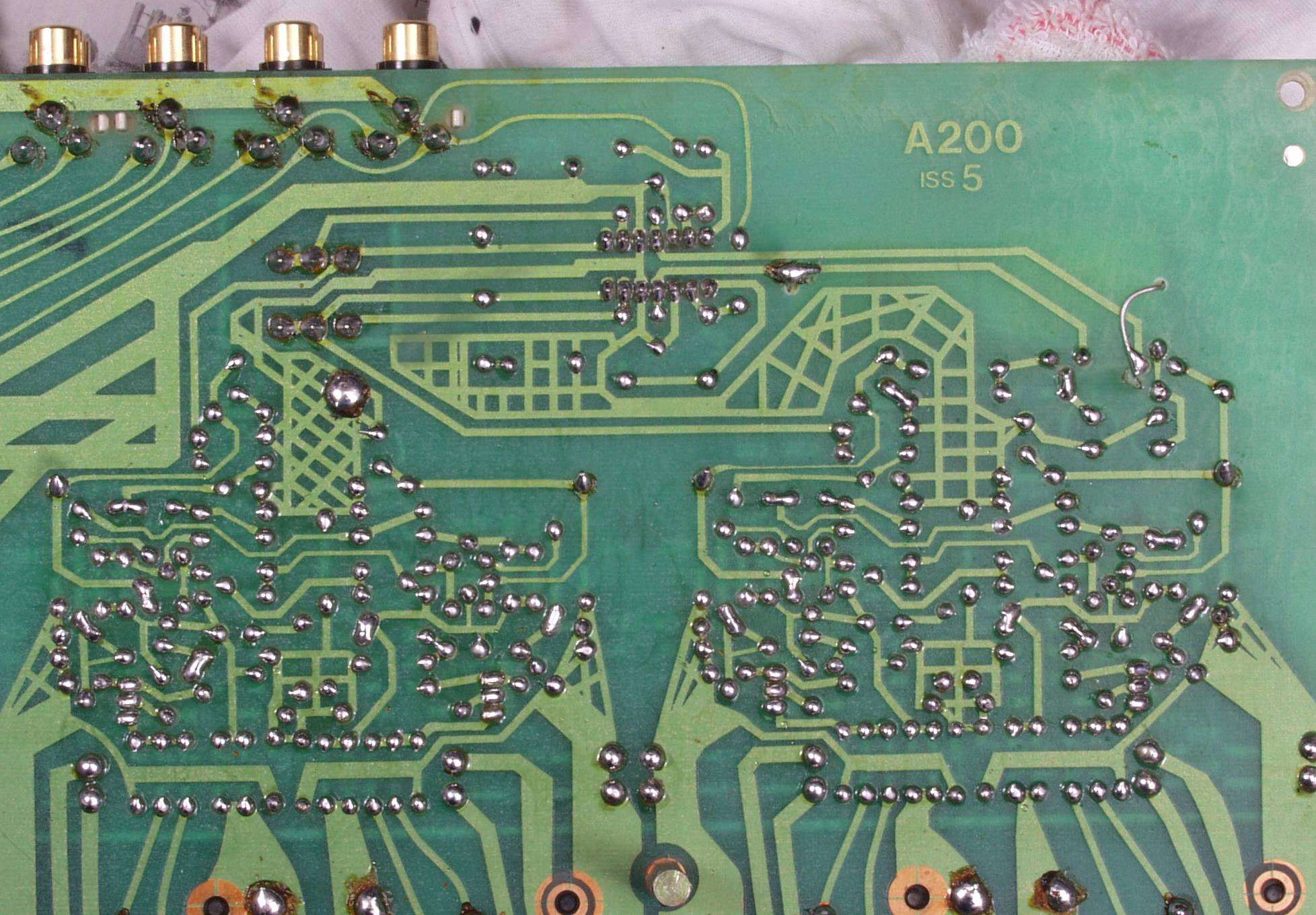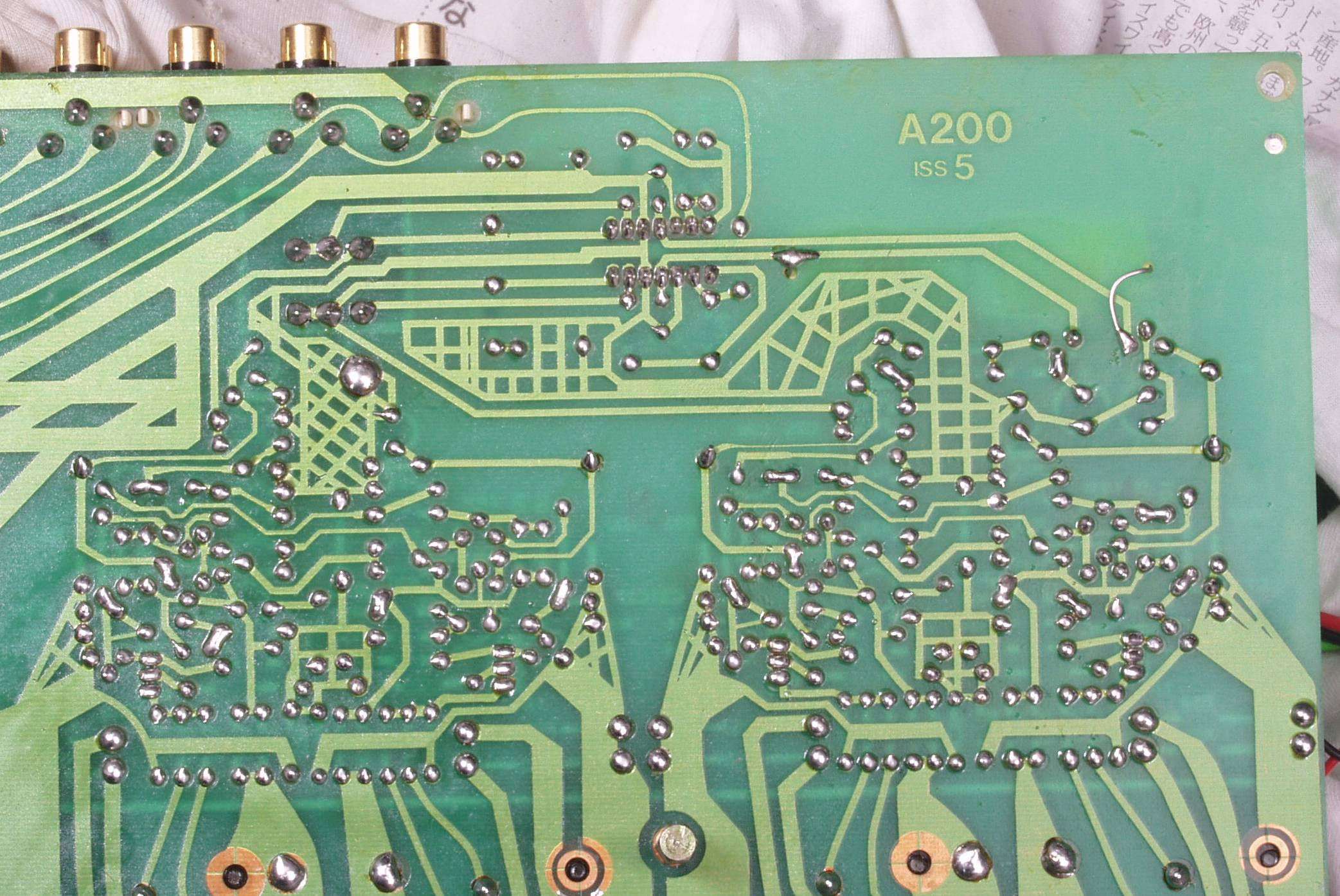 C6D. 修理(半田補正)後 EQ−AMP基板裏、 半田を全部やり直す。