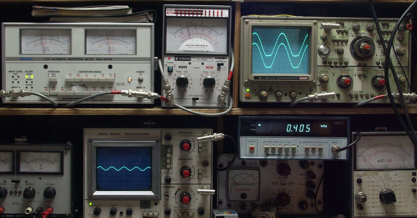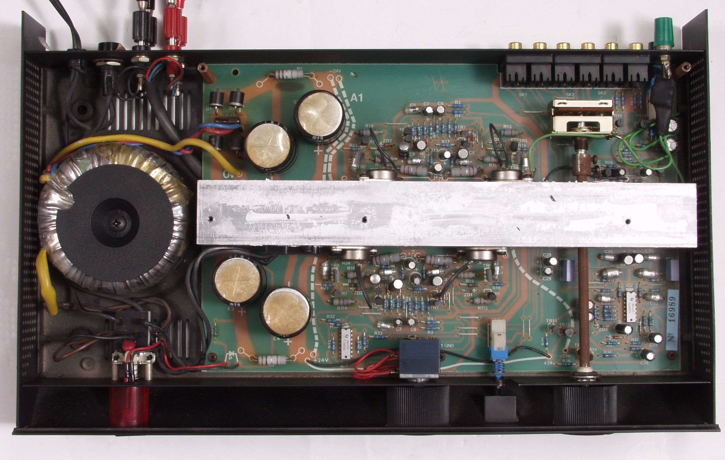 A5. 点検中 バラック修理で出力測定 10V=12.5W 4%歪み率 AUX入力 400HZ