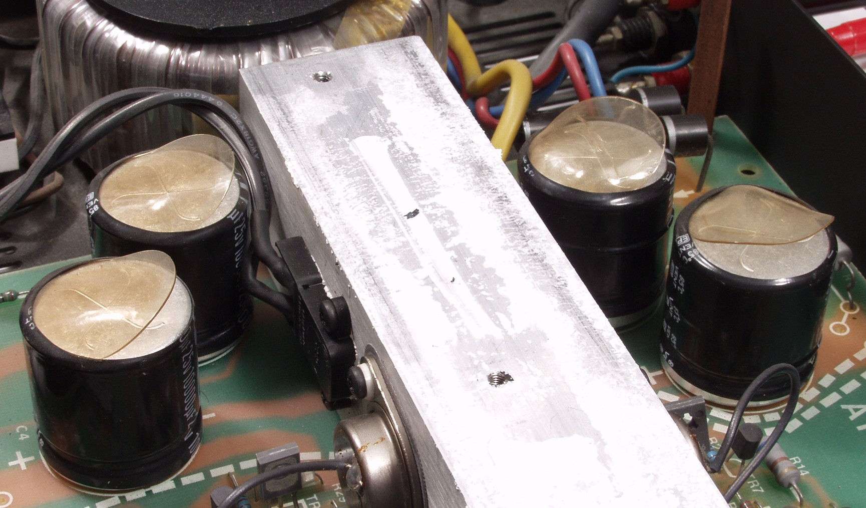 A2. 点検中 熱のため膨み、頭のプラスチックが取れている全電源用電解コンデンサー!