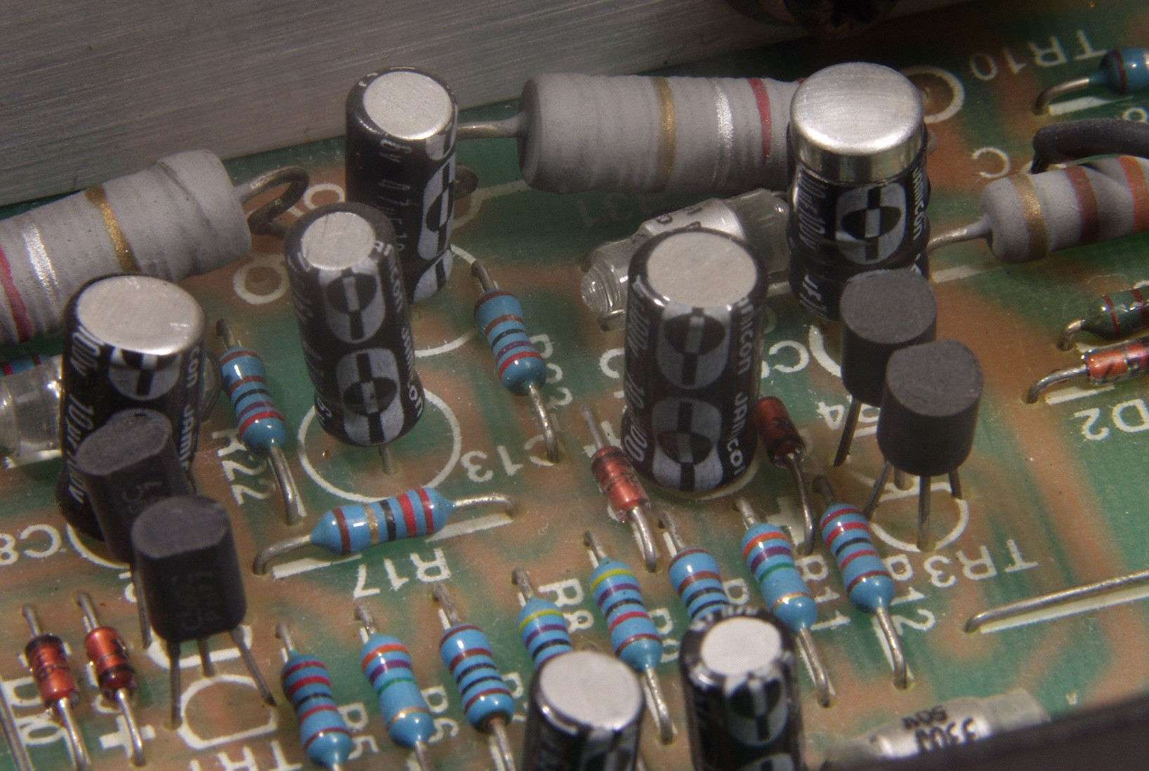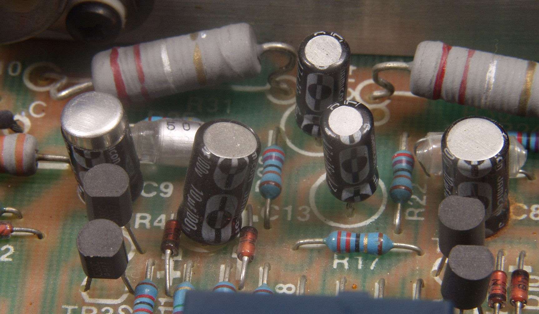 A4. 点検中 熱のため膨み、頭のプラスチックが取れている後側小型電解コンデンサー!