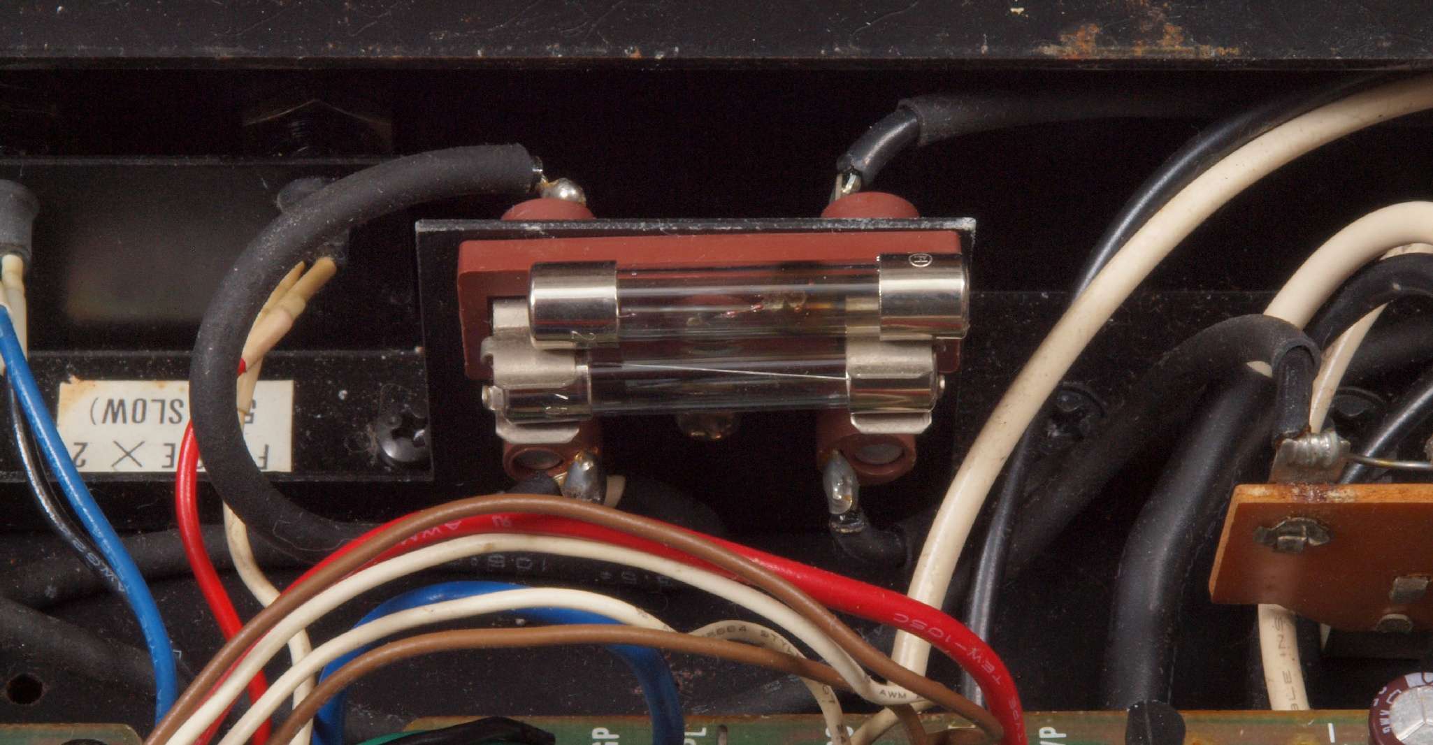 A42. 点検中 下蓋を取り、下から見る。右側電源ヒューズ溶断。