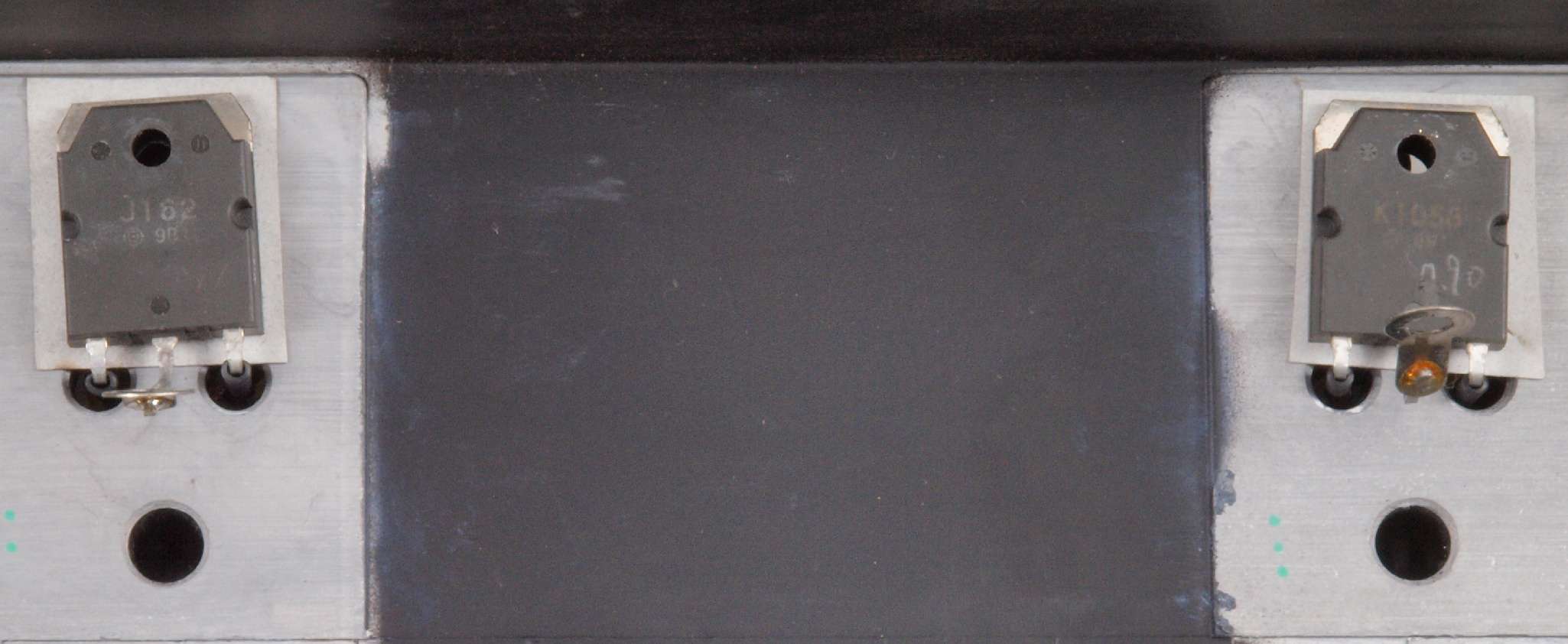 C31. 修理前 R側終段FET(電界トランジスター)。終段FET(電界効果トランジスター)は2SK1058/2SJ162に交換されている。
