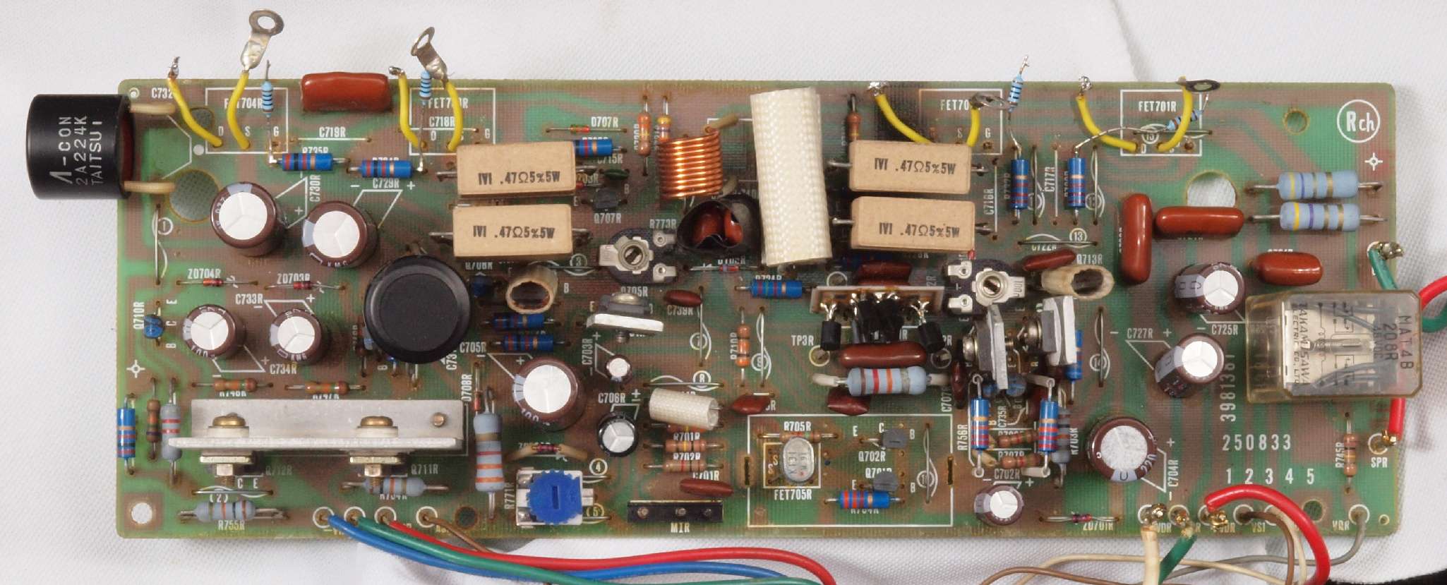 A52. 点検中 終段FET(電界効果トランジスター)のドレイン抵抗が全て交換されている。