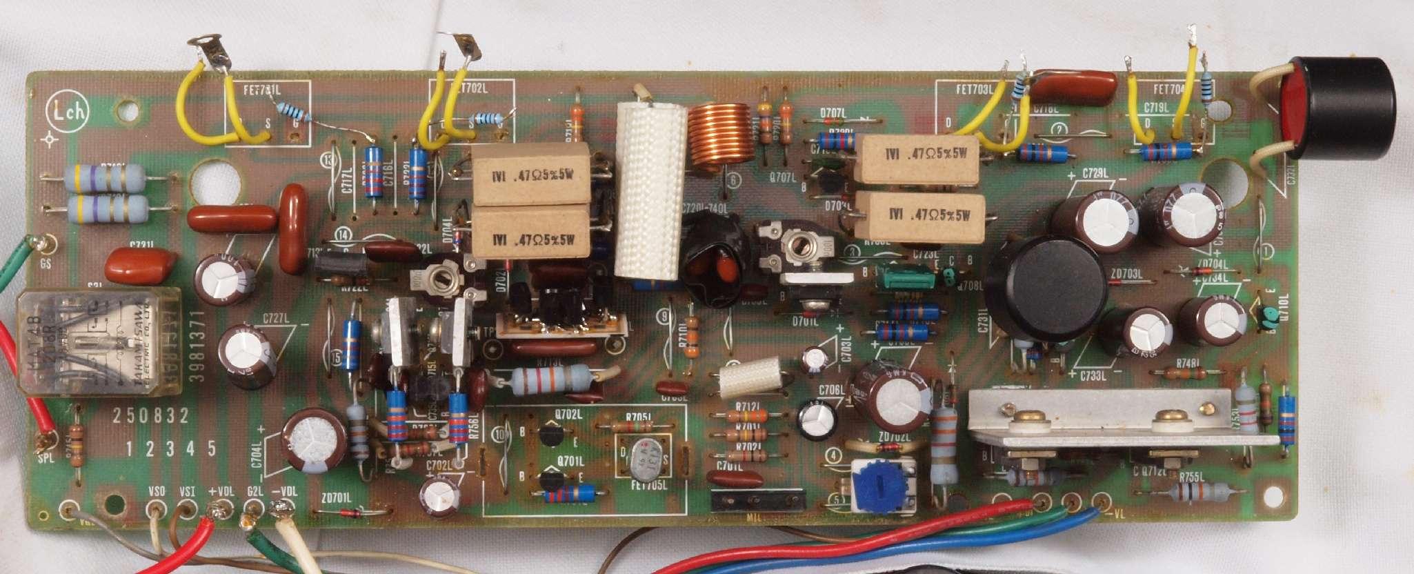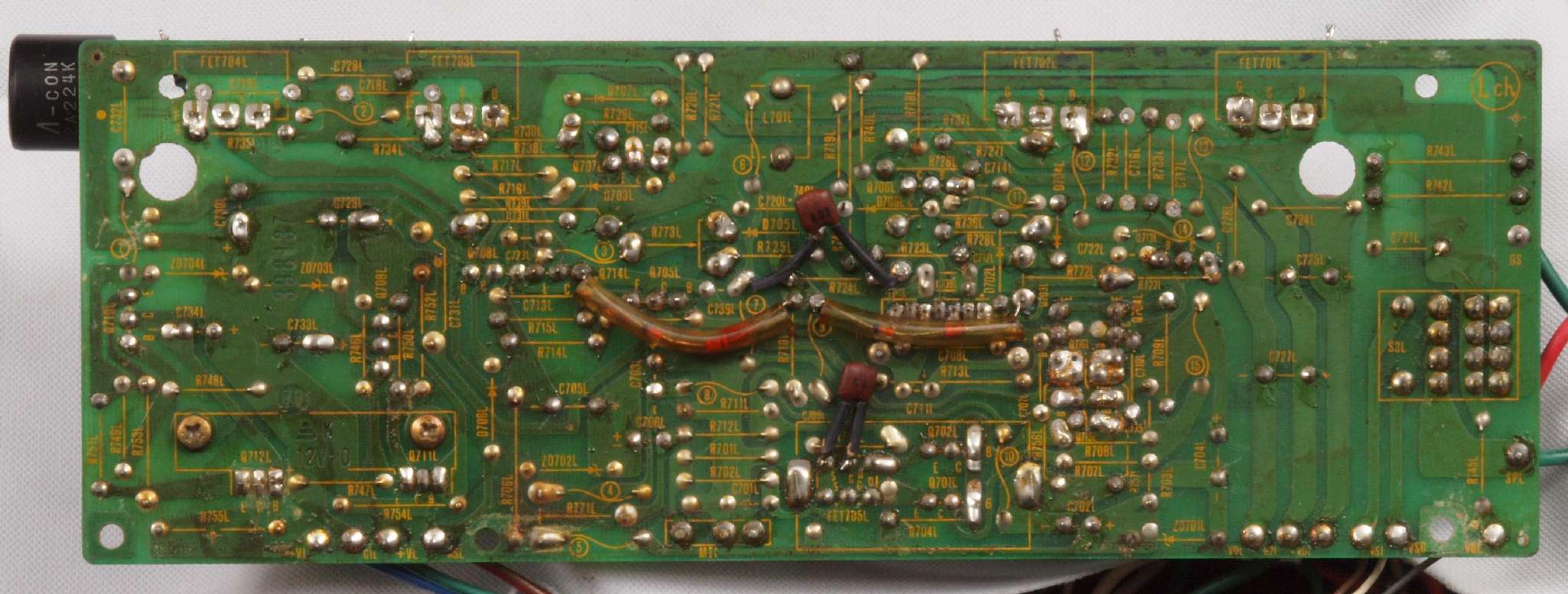 • 左右終段FET(電界効果トランジスター)交換時の推敲不足による各部劣化。