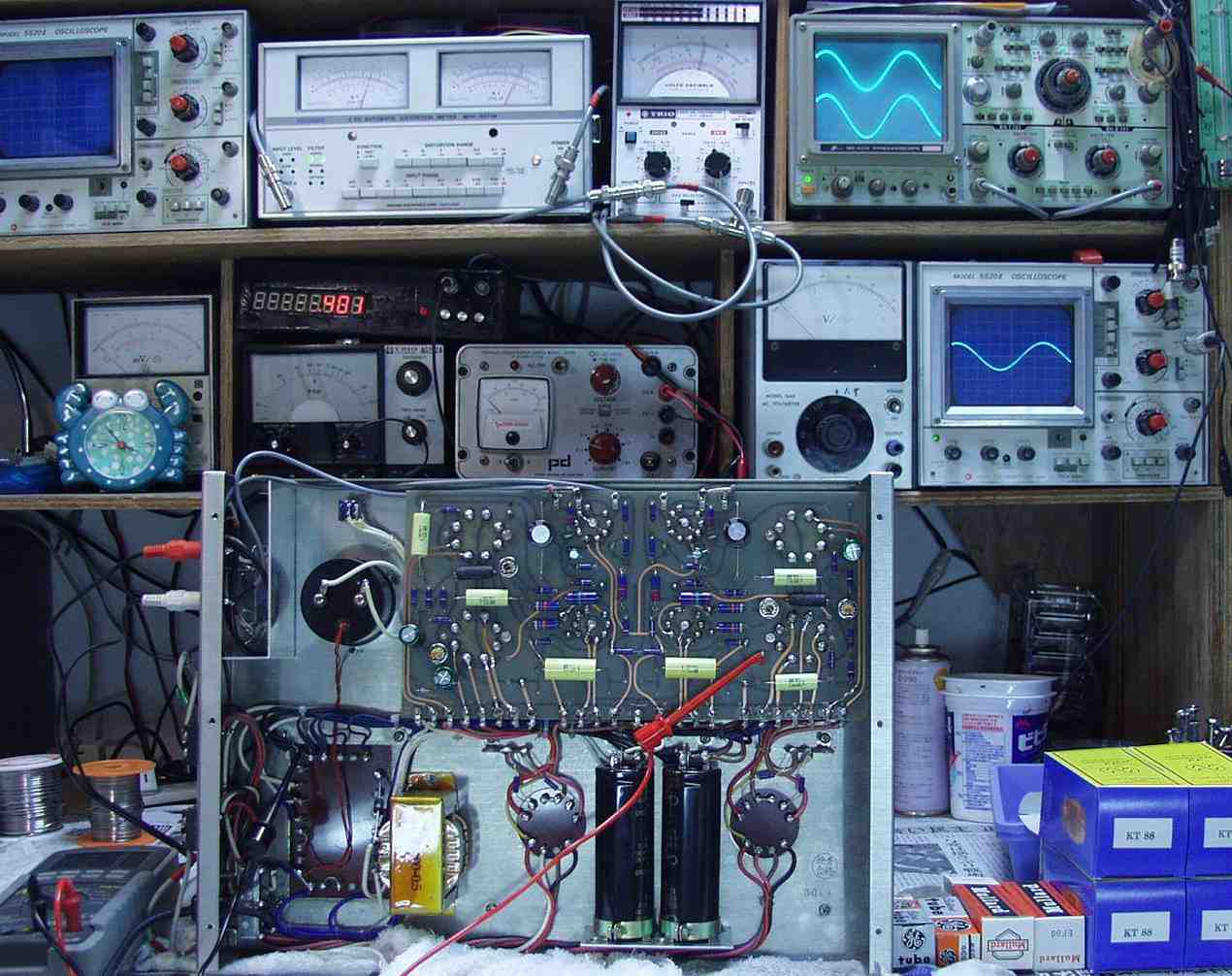 | E2A. SP出力=20V 歪み率=0.28% 1000HZ カタログ値=0.3% 真空管も、部品も良いのを使用すると、カタログ値を上回る |