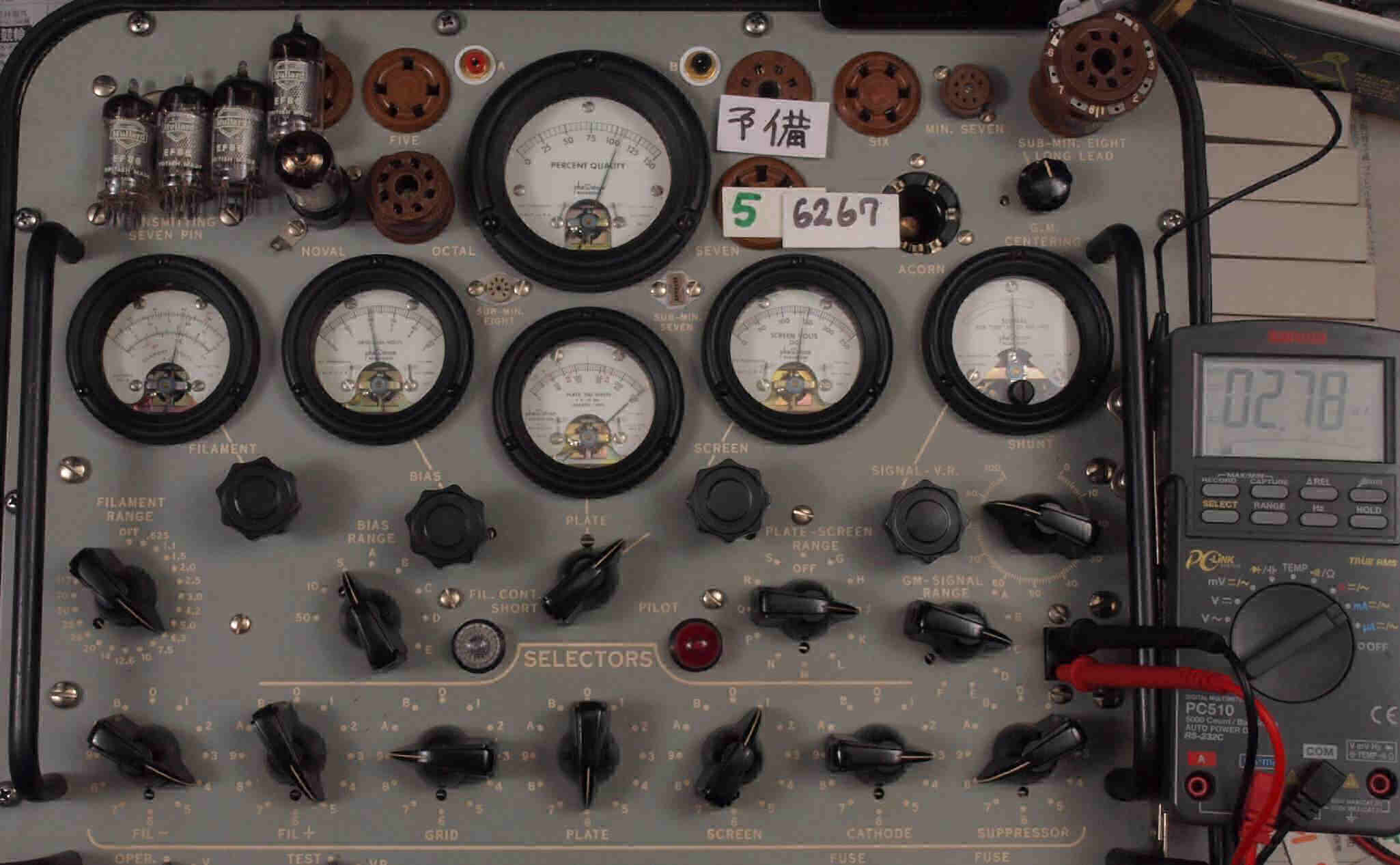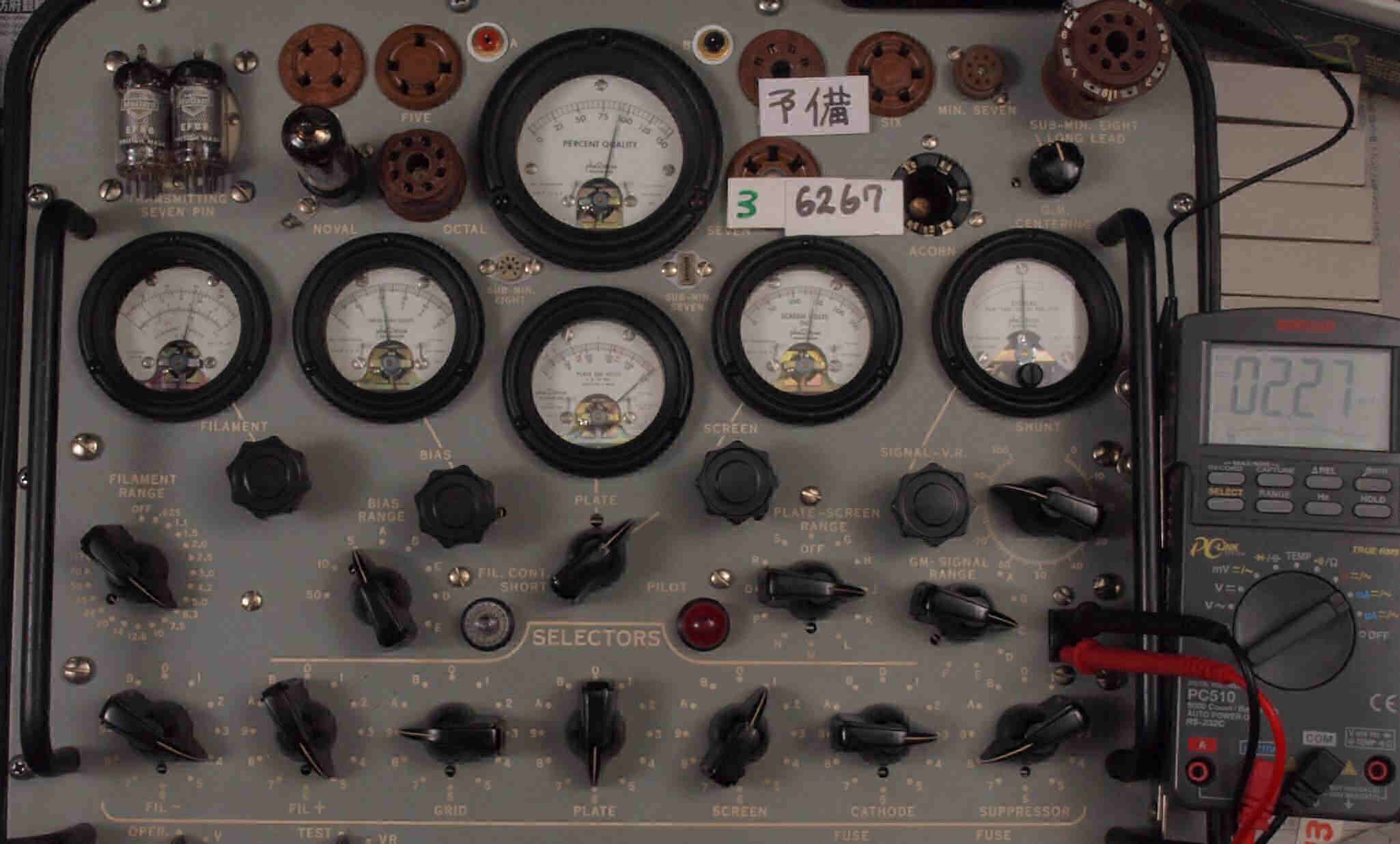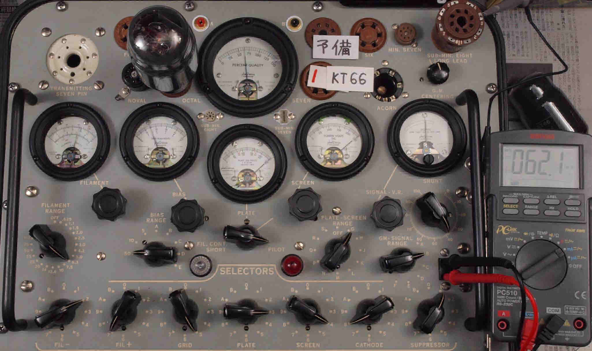 | 12AX7(ECC83) Gm、IP測定。 EF86(6267) Gm、IP測定。 KT66(5881) Gm、IP測定。 GZ32(5V4) エミッション測定。 |