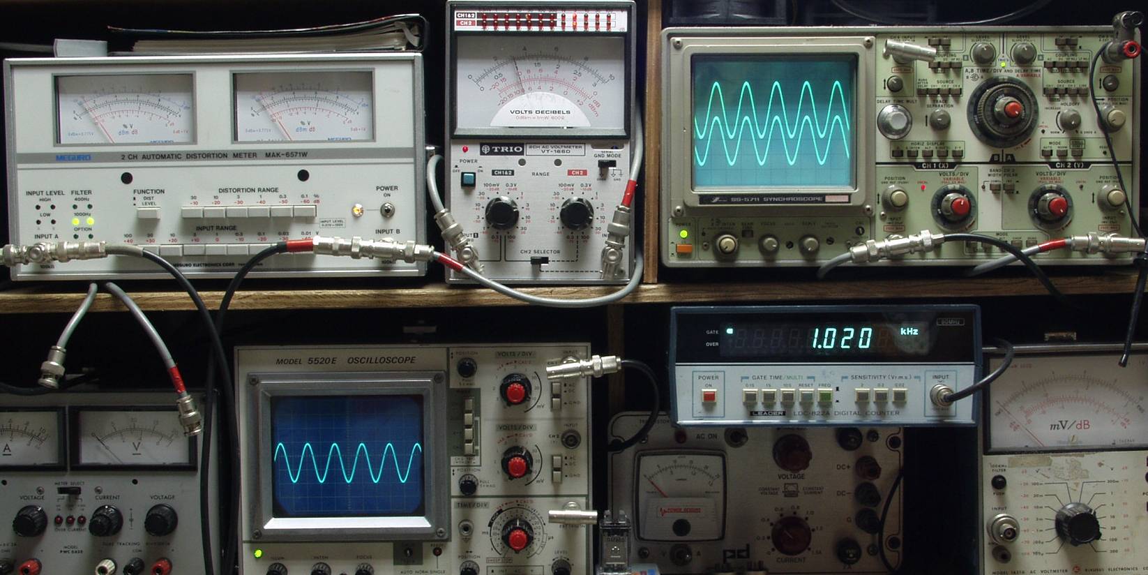 | EE. 上位測定器による 調整・測定。 下のオーディオアナライザーVP−7732Aで自動測定。 |