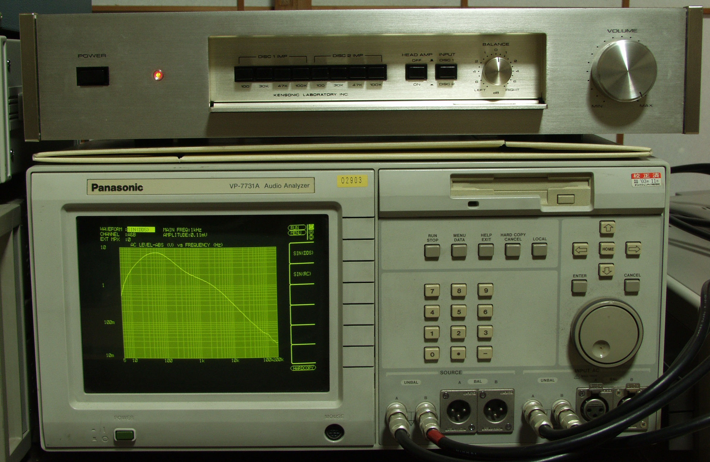 | EE. 上位測定器による 調整・測定。 F0. 下のオーディオアナライザーVP−7732Aで自動測定。 |