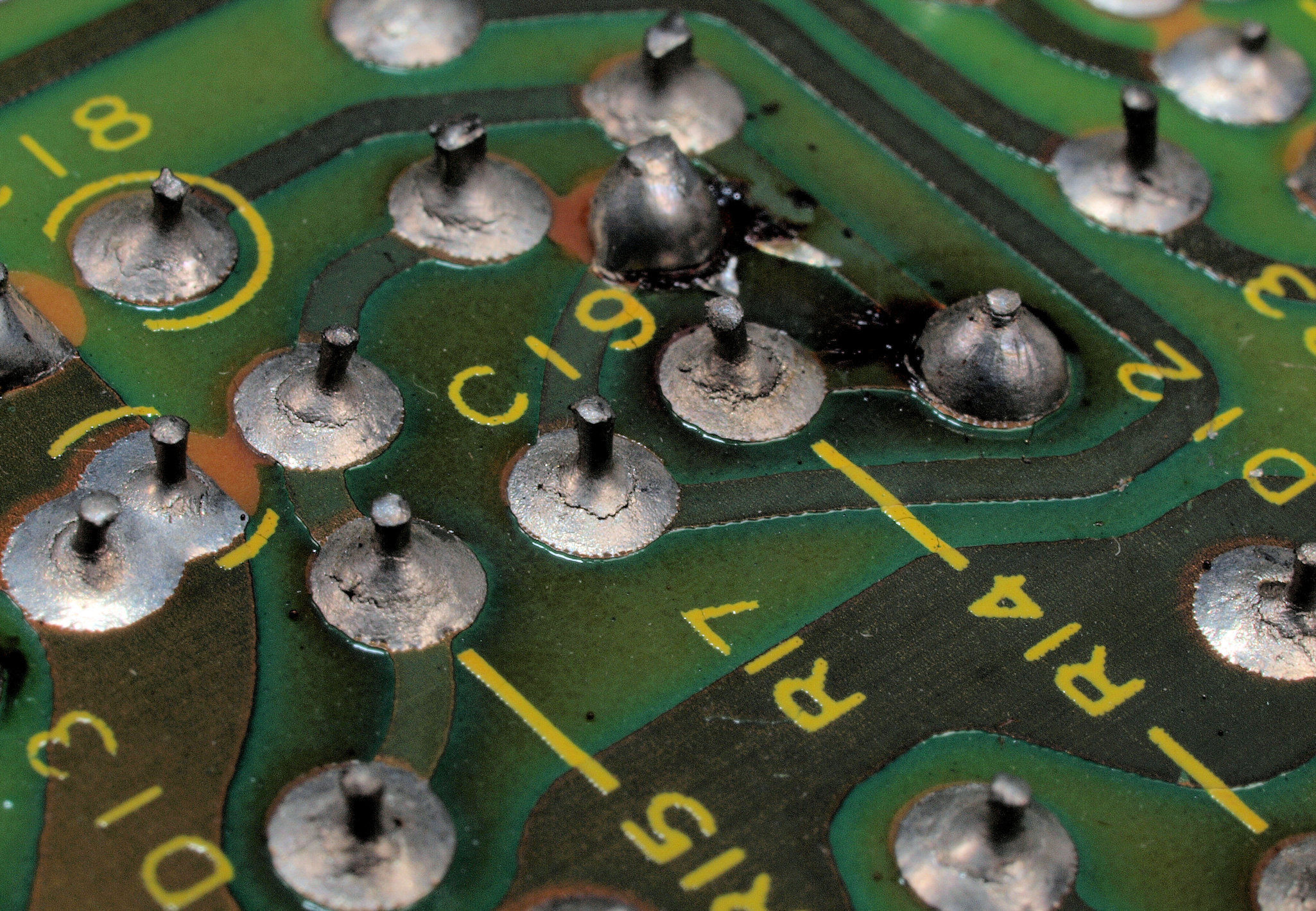 | C233. 修理前 R側ドライブ基板裏、半田不良ケ所、その2。 | ||||||||||||||||||||||||||