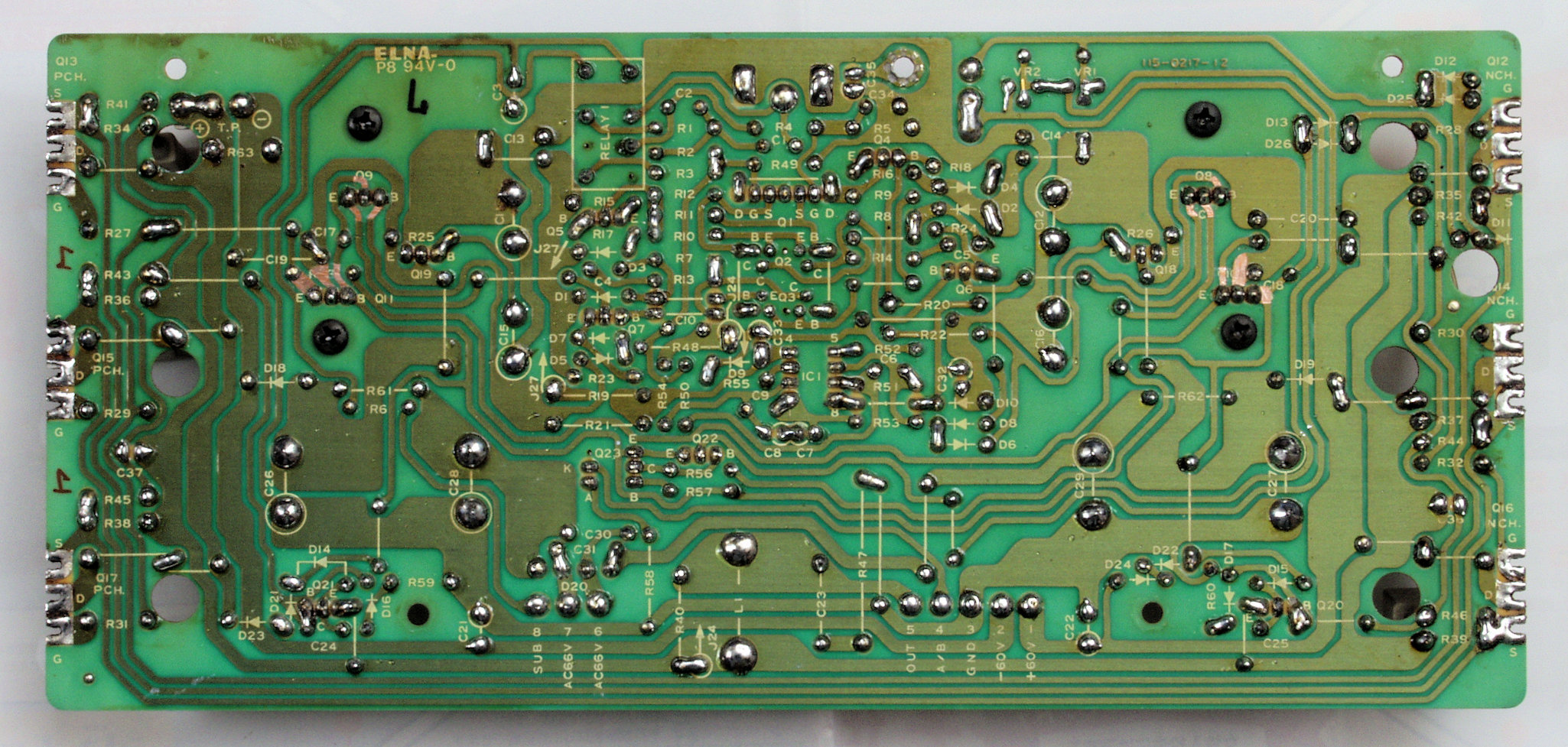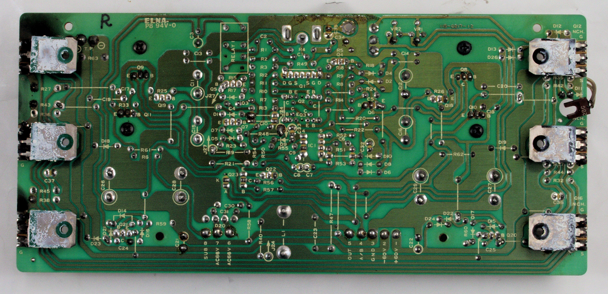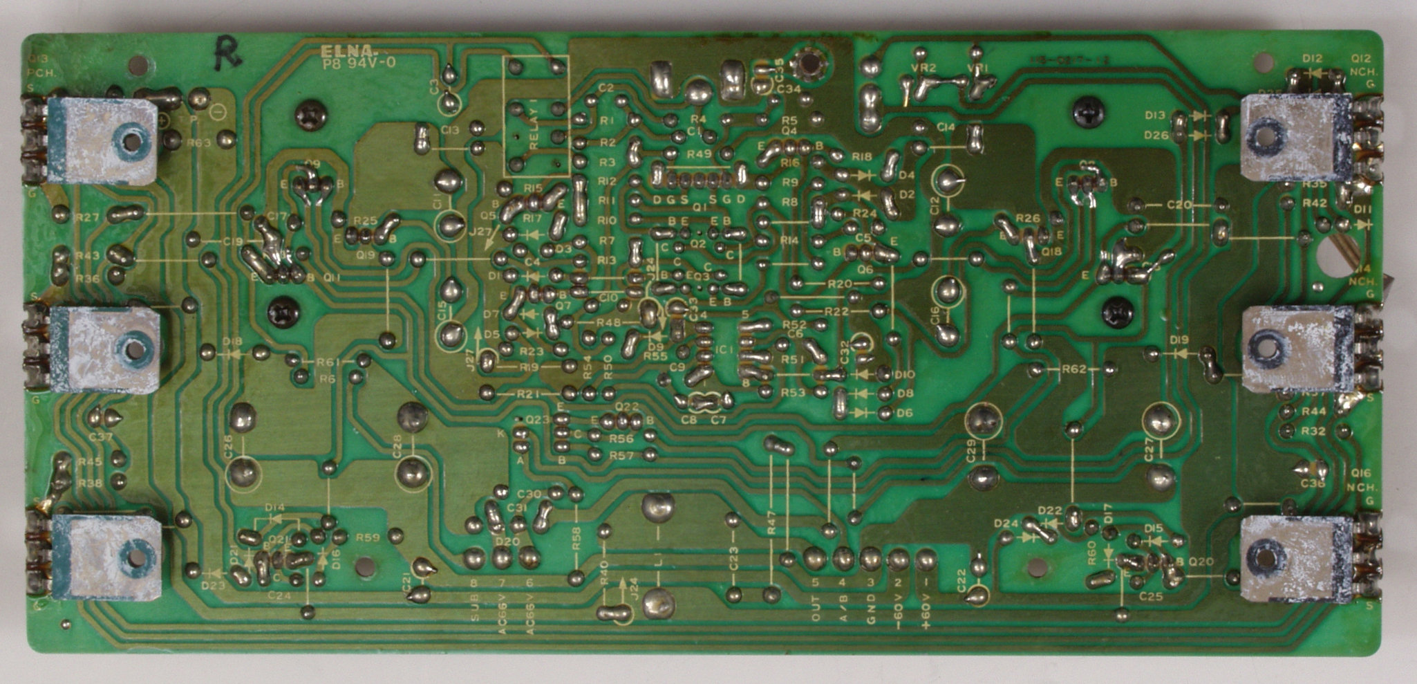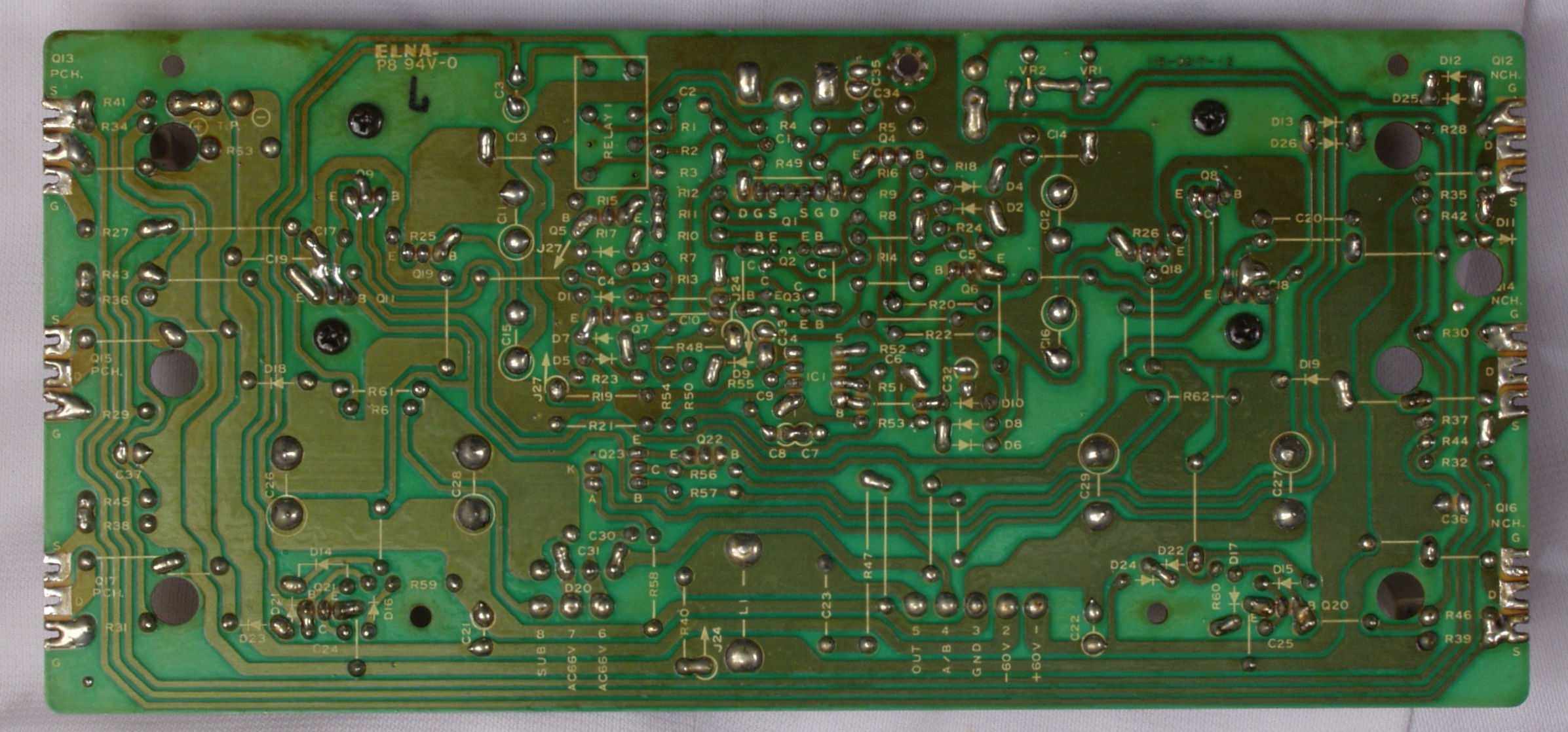 | C25. 修理(半田補正)後 R側−AMP基盤裏 全ての半田をやり修す | ||||||||||||||||||||||||||||||||||||||||