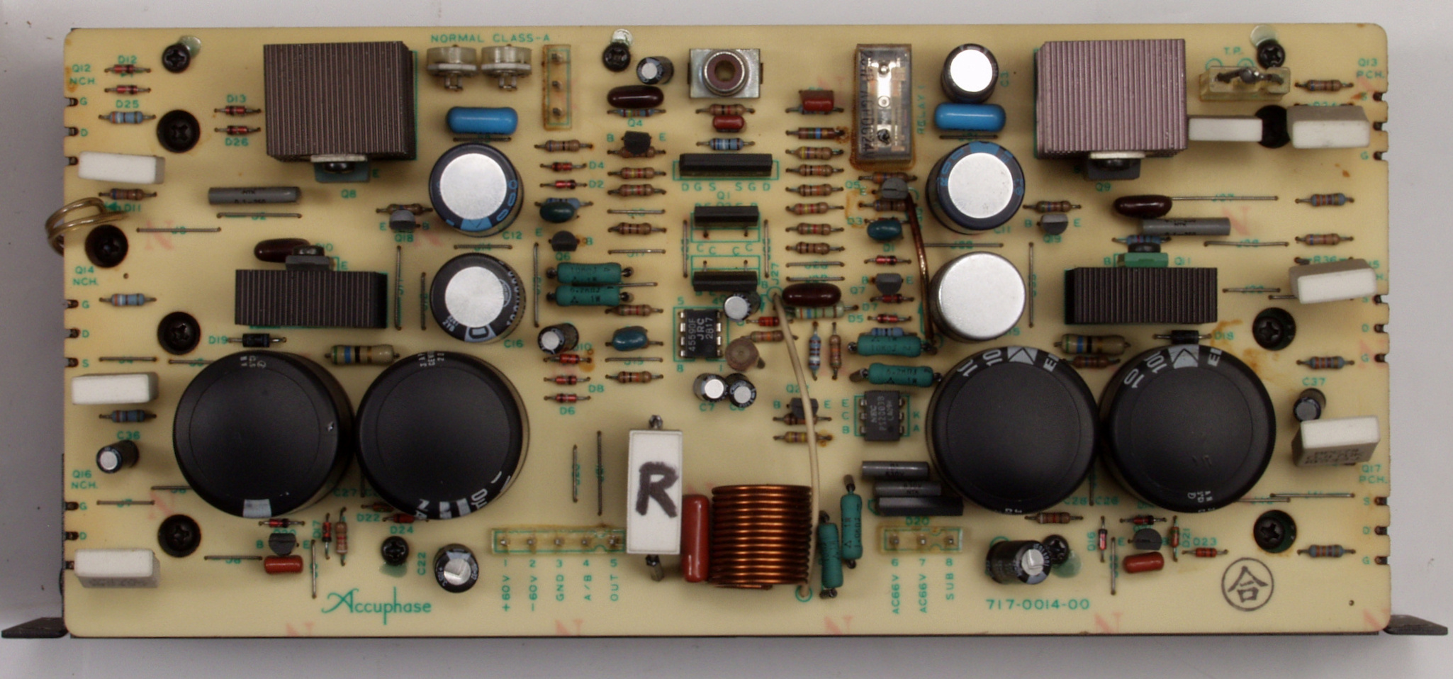 | C23. 修理後 R側−AMP基盤 電解コンデンサー18個、半固定VR2個、リレー交換 | ||||||||||||||||||||||||||||||||||||||||