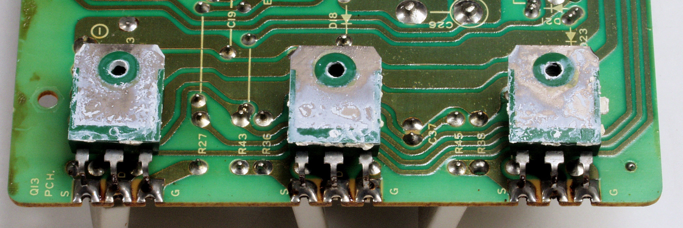 | C35. 修理(半田補正)後 L側−AMP基盤裏 全ての半田をやり修す | ||||||||||||||||||||||||||||||||||||||||