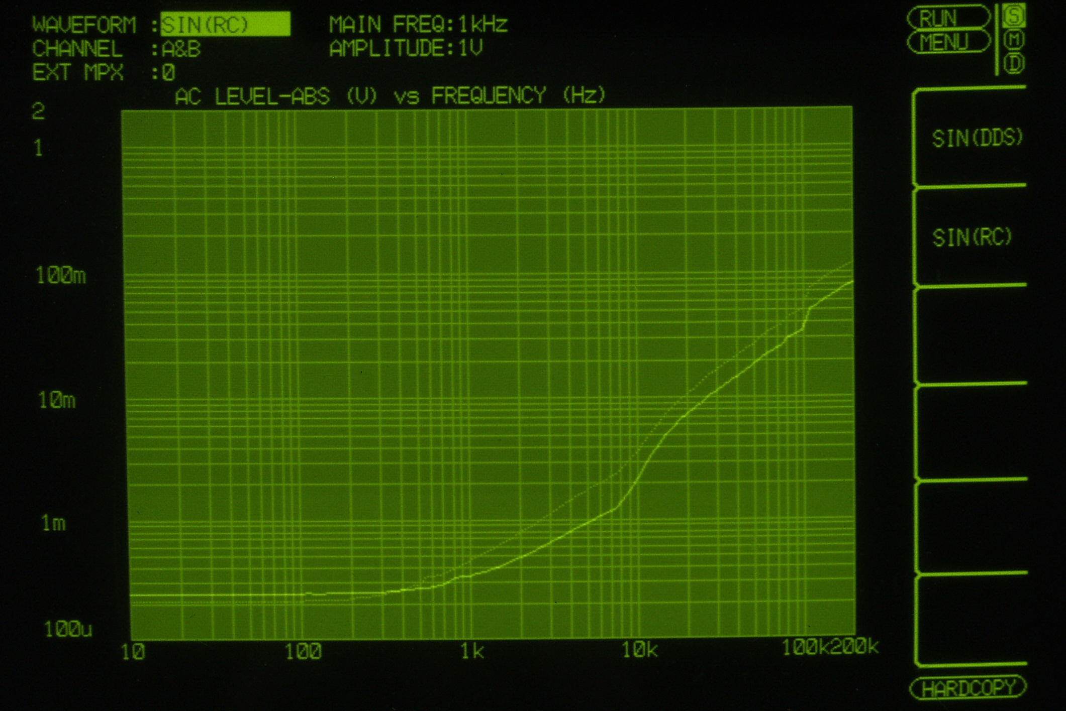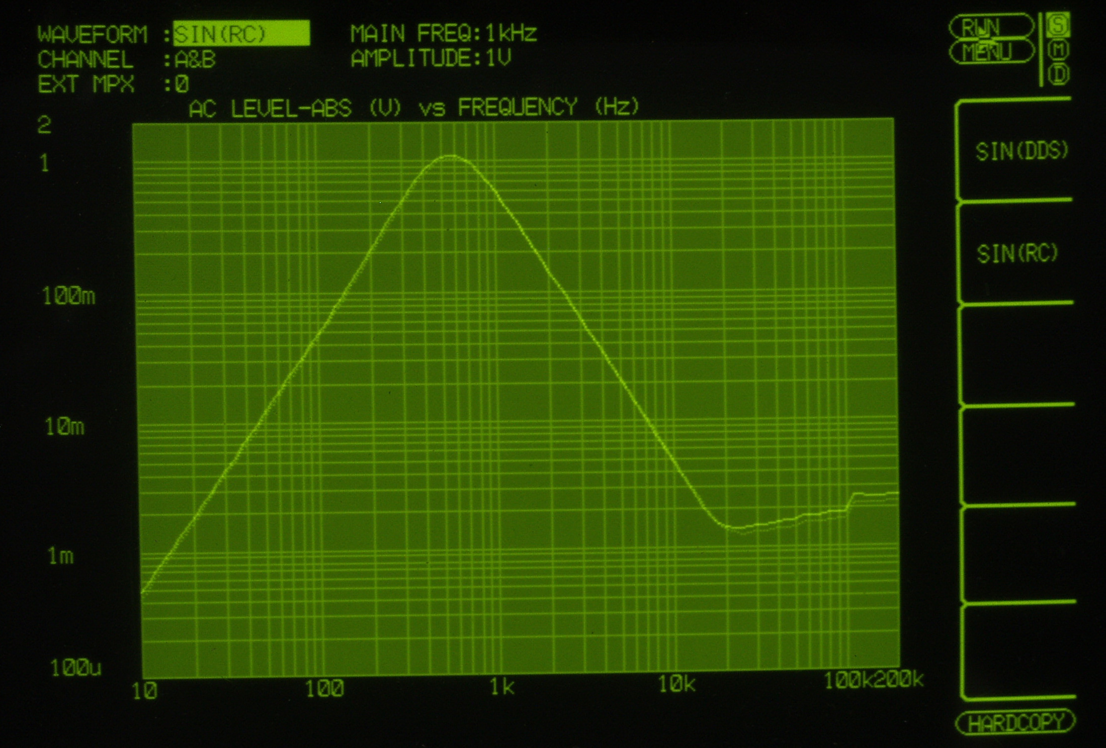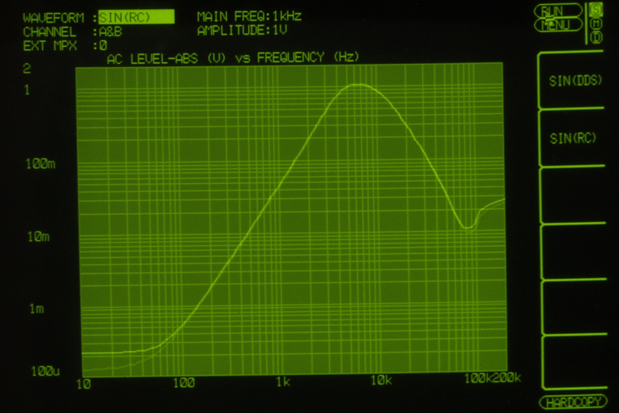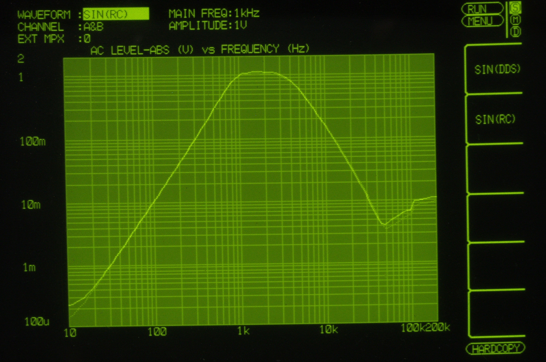 200HZ以下及び、30KHZ以上は入力レベルが測定以下になる為、表示出来ない。