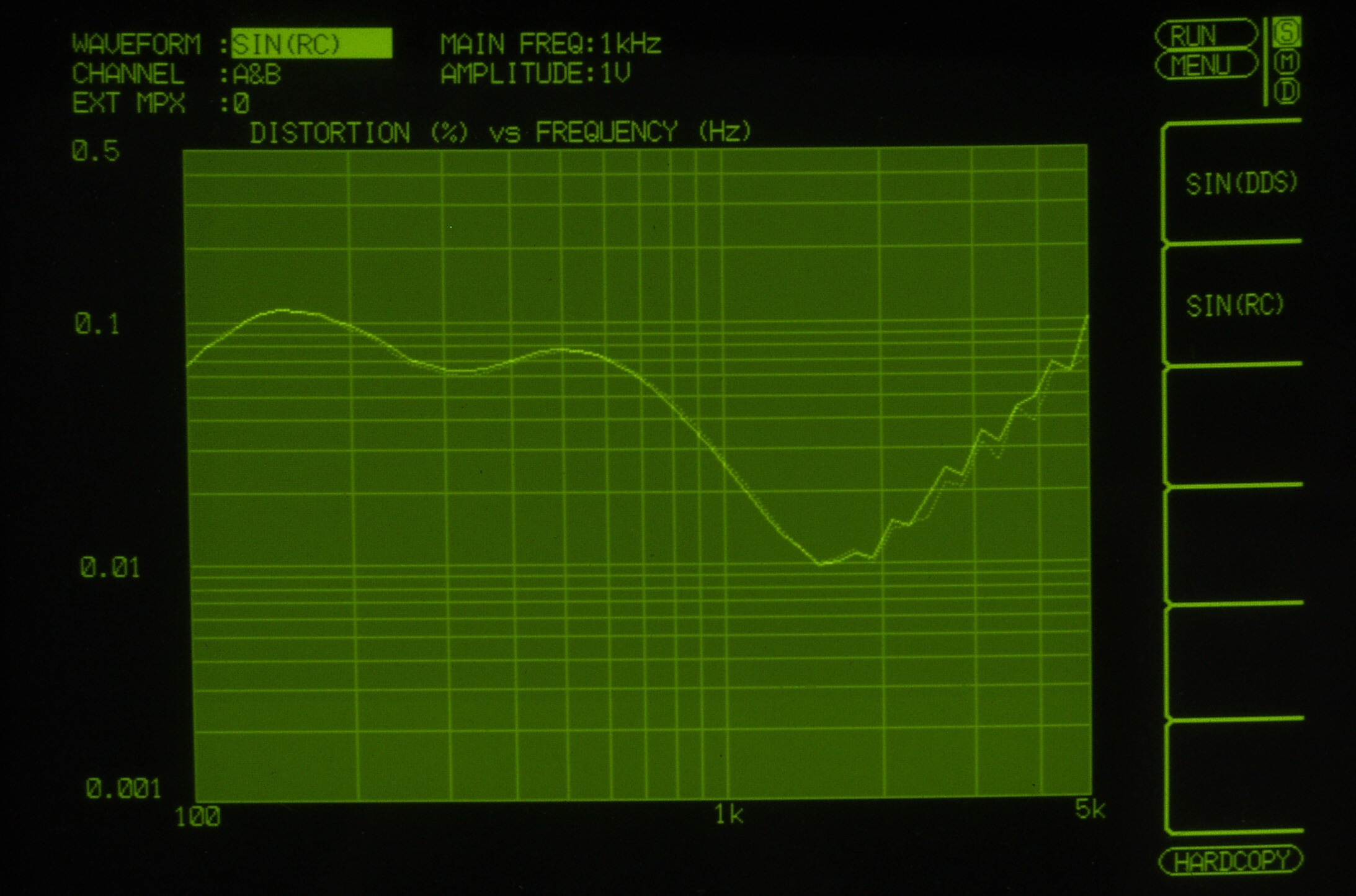 100HZ以下及び、5KHZ以上は入力レベルが測定以下になる為、表示出来ない。