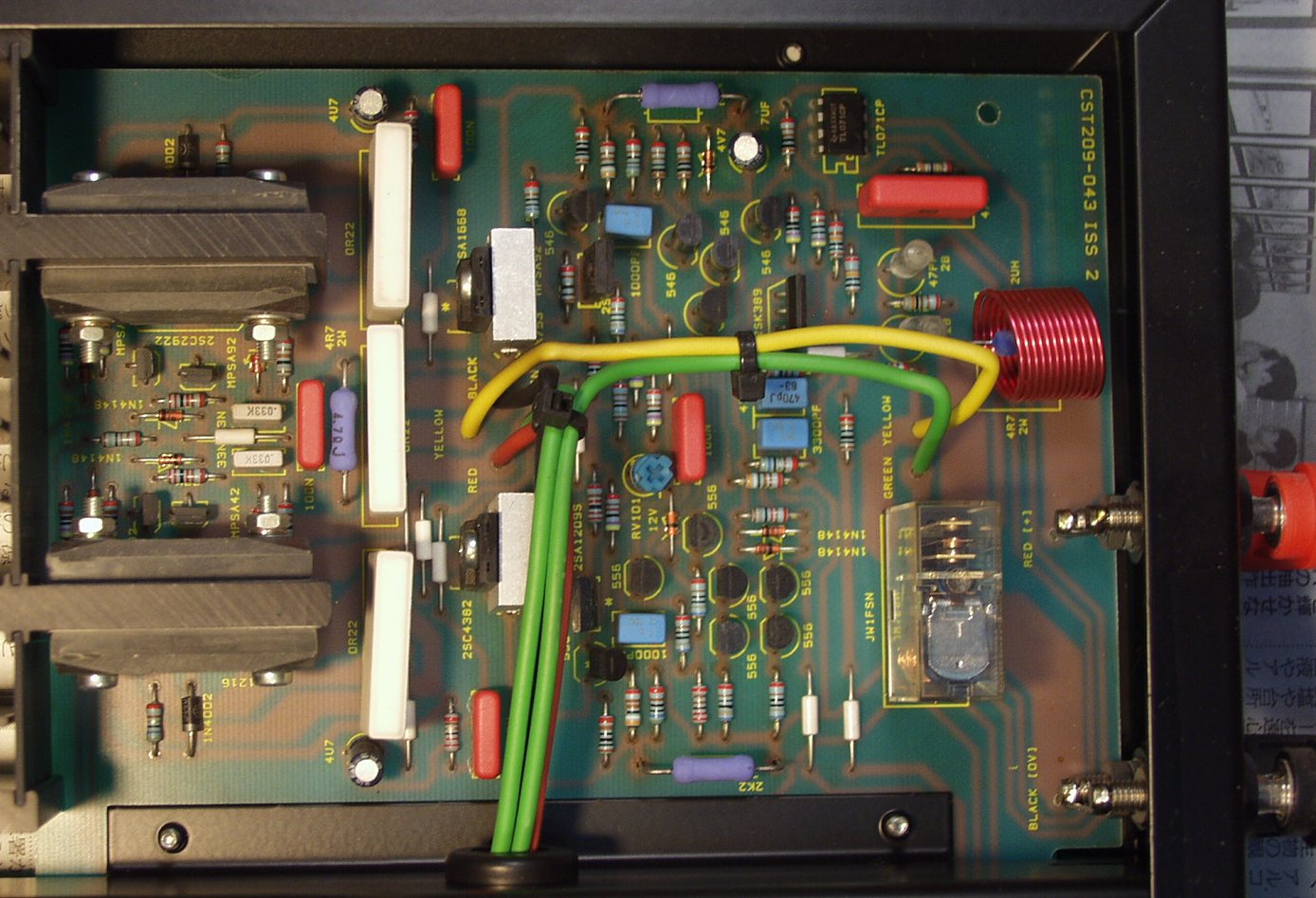 | C−1B. 修理後 R側AMP 半固定VR1個、電解コンデンサー3個、TR(トランジスター)4個交換 |