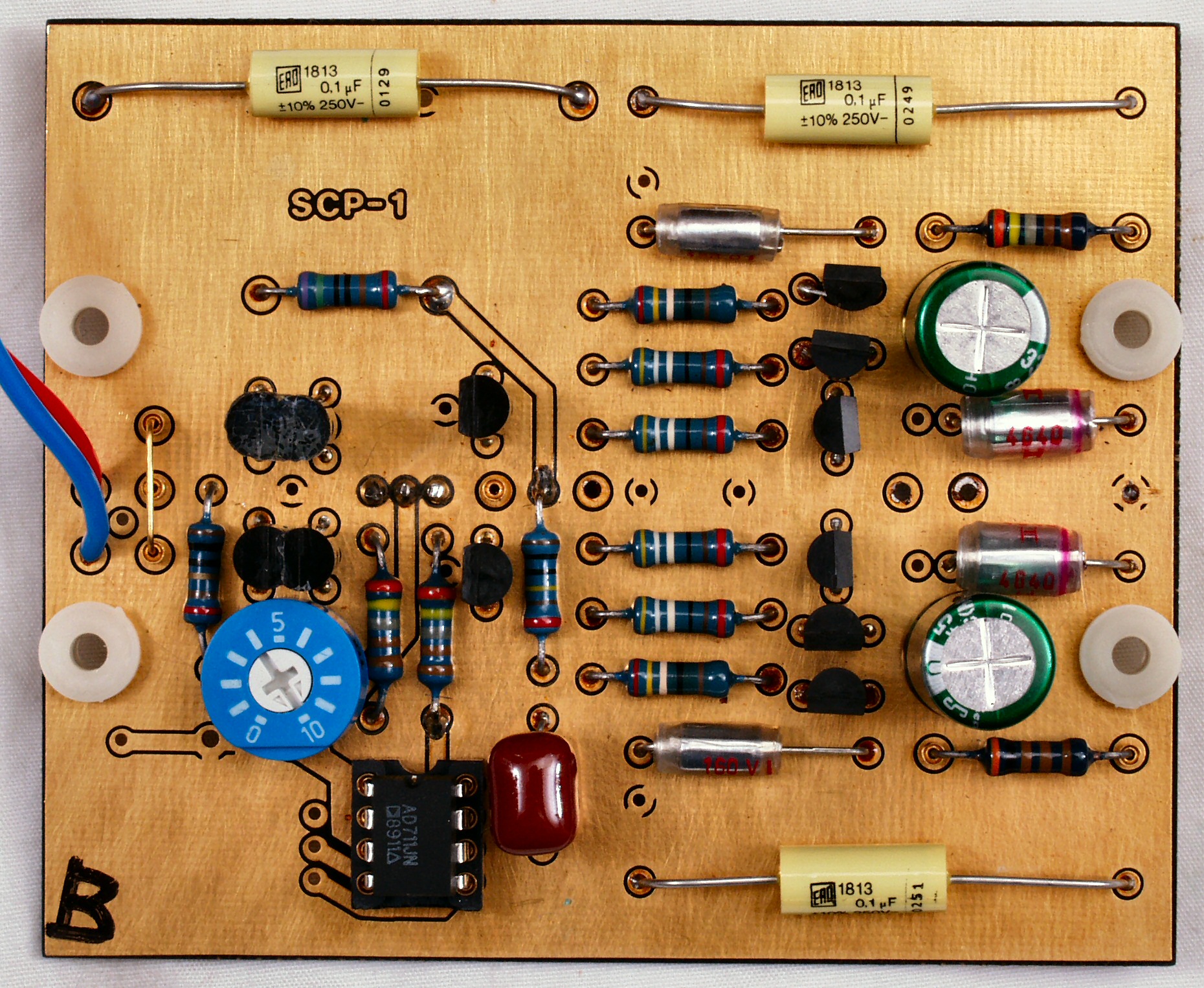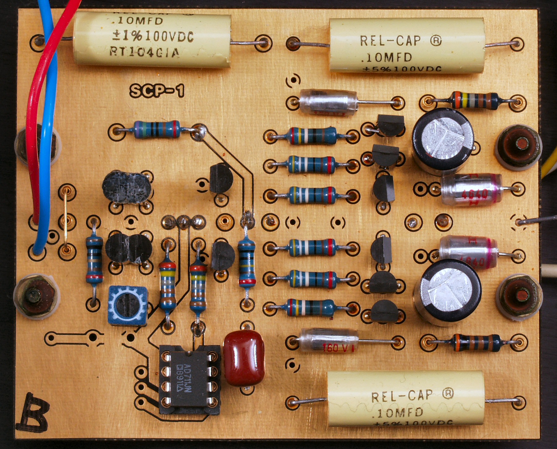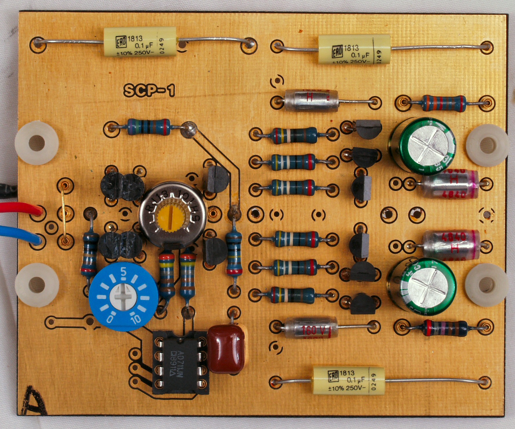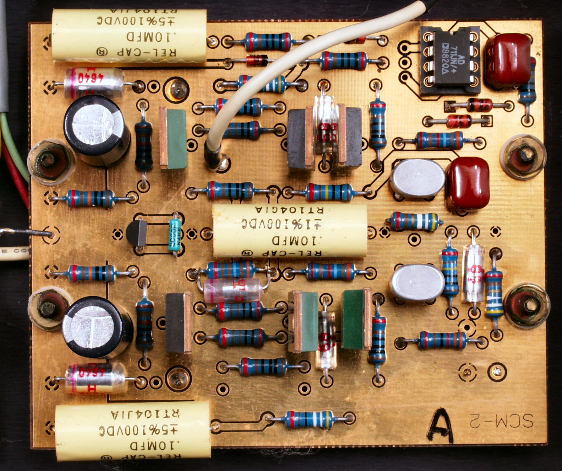 | C6B. 修理後 EQ−AMP基板 電解コンデンサー2個、フイルムコンデンサー3個、OP−AMP交換 |