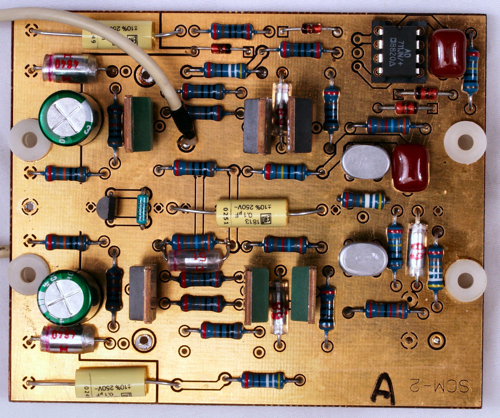 | C5B. 修理後 MC−HEAD-AMP基板 電解コンデンサー2個、フイルムコンデンサー3個、半固定VR2個交換 |