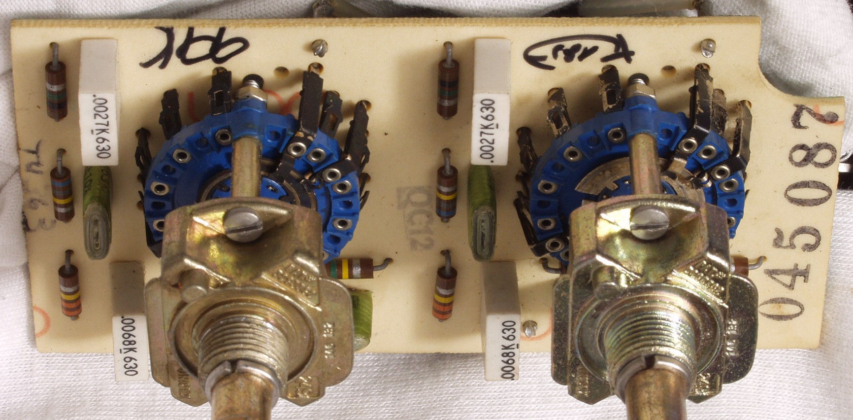 | C5A. 修理中 TREBLコントロール基盤のSW接点清掃中 左=清掃前、右=清掃後 | ||||||||||||||||||||||||||||||||||||||||||||||||||||||||||