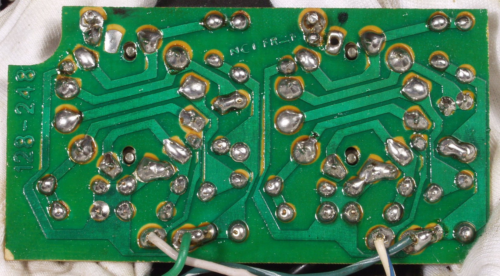 | C4A1. 修理中 BASSコントロール基盤のSW接点清掃中 左=清掃前、右=清掃後 | ||||||||||||||||||||||||||||||||||||||||||||||||||||||||||