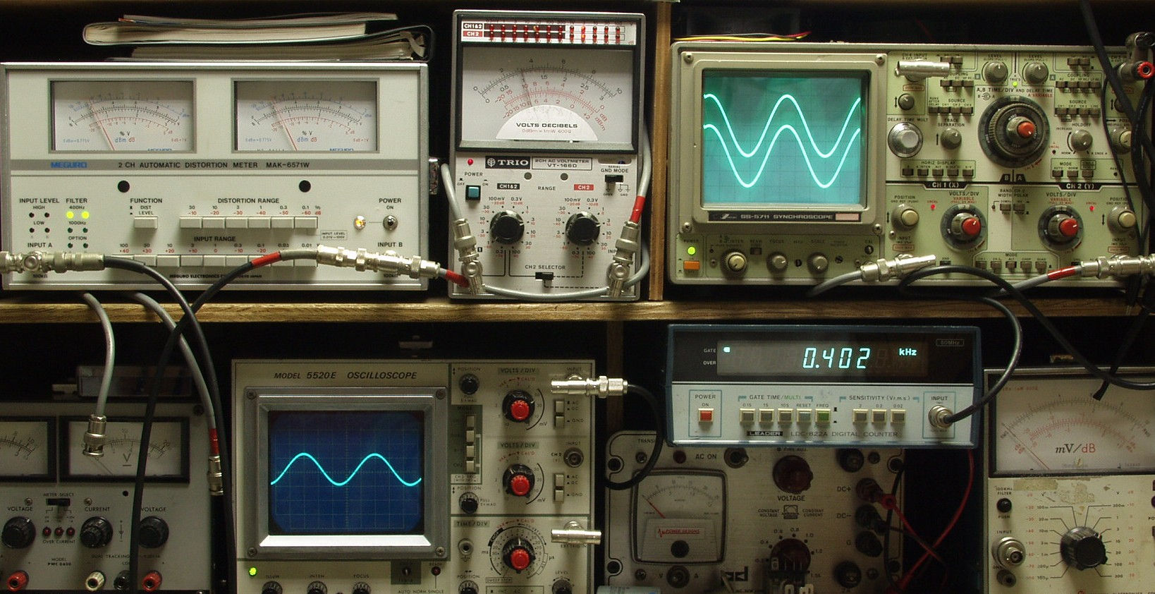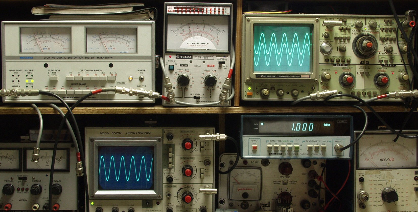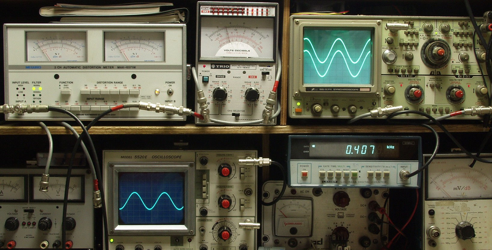 | F. 上位測定器による調整・測定 F0. 下のオーディオアナライザーVP−7732Aで自動測定。 |